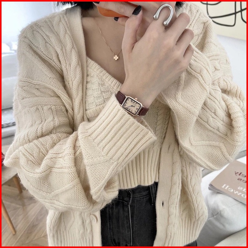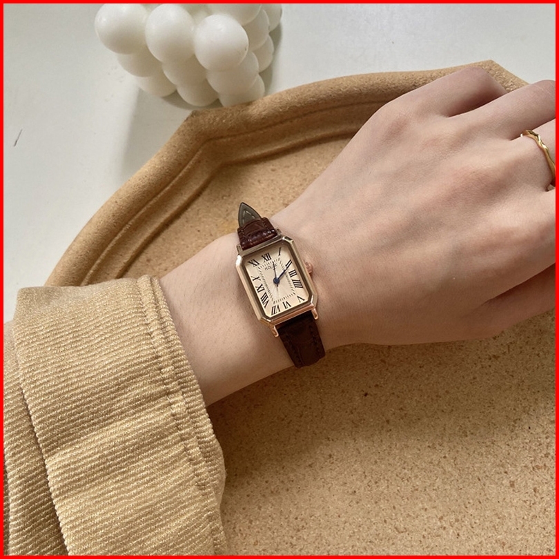 Holek 82012 Jam Tangan Wanita Kuarsa Sederhana Skala Romawi Persegi Retro Jam Tangan Pelajar Cewek