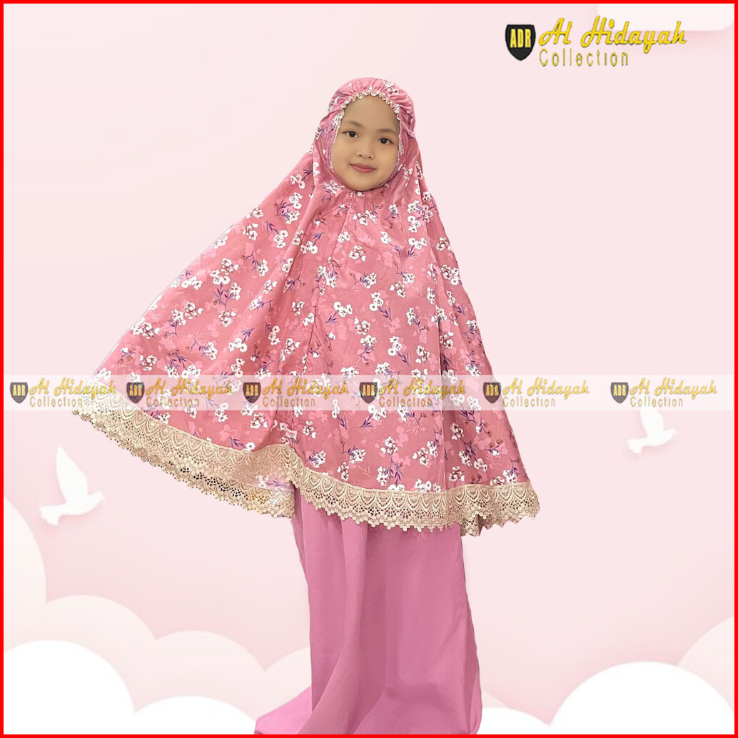 Mukena Anak Katun Motif Renda Mewah Mukenah Premium 2 In 1 Resleting Dagu