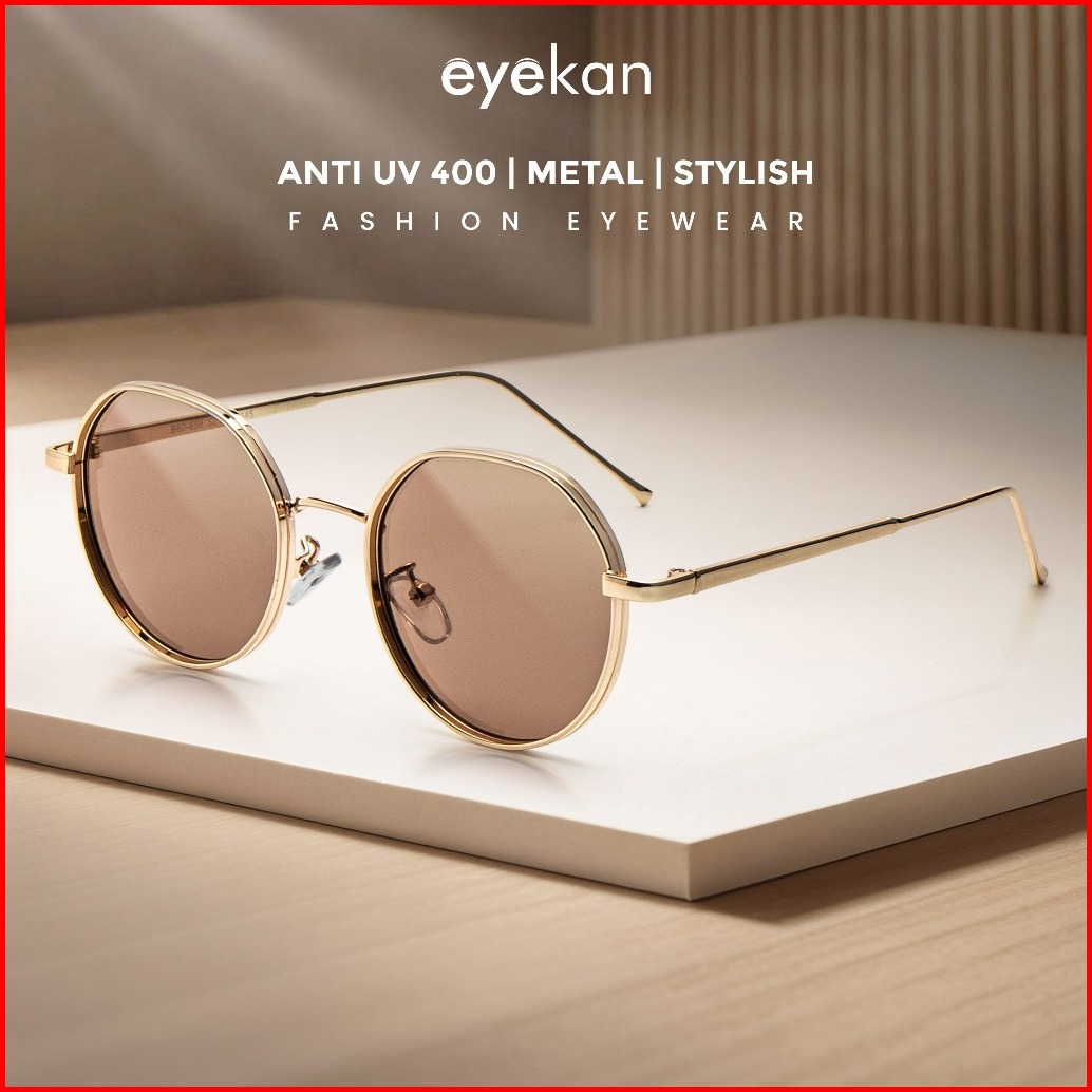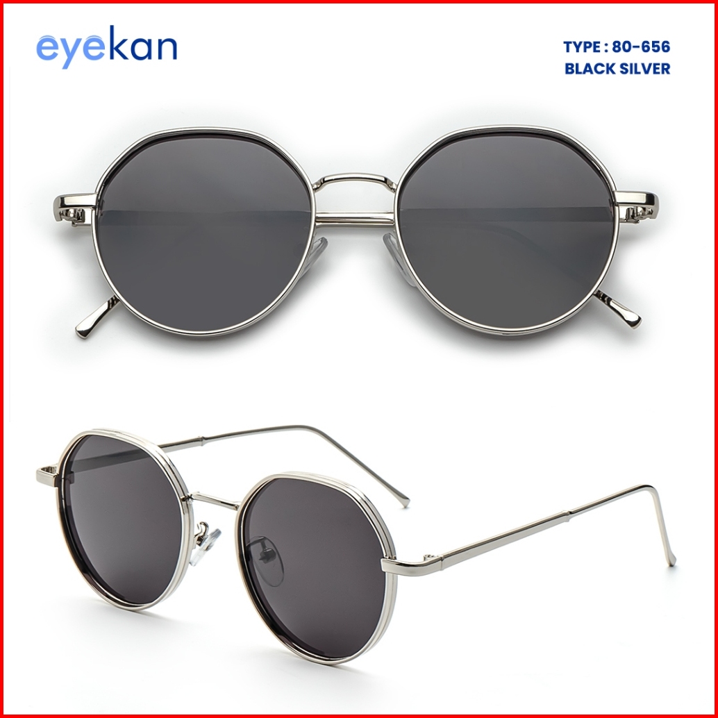 Eyekan Kacamata Hitam Retro Sunglasses Anti Uv 400 Kacamata Anti Silau Minus Bentuk Bulat Untuk Pria Wanita 80-656