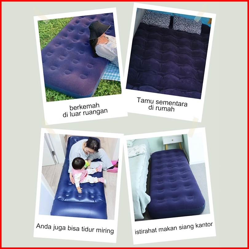 Kasur Angin Camping Tamu - Portable Single Double Air Bed Lipat Praktis. Tinggal Tiup Pakai
