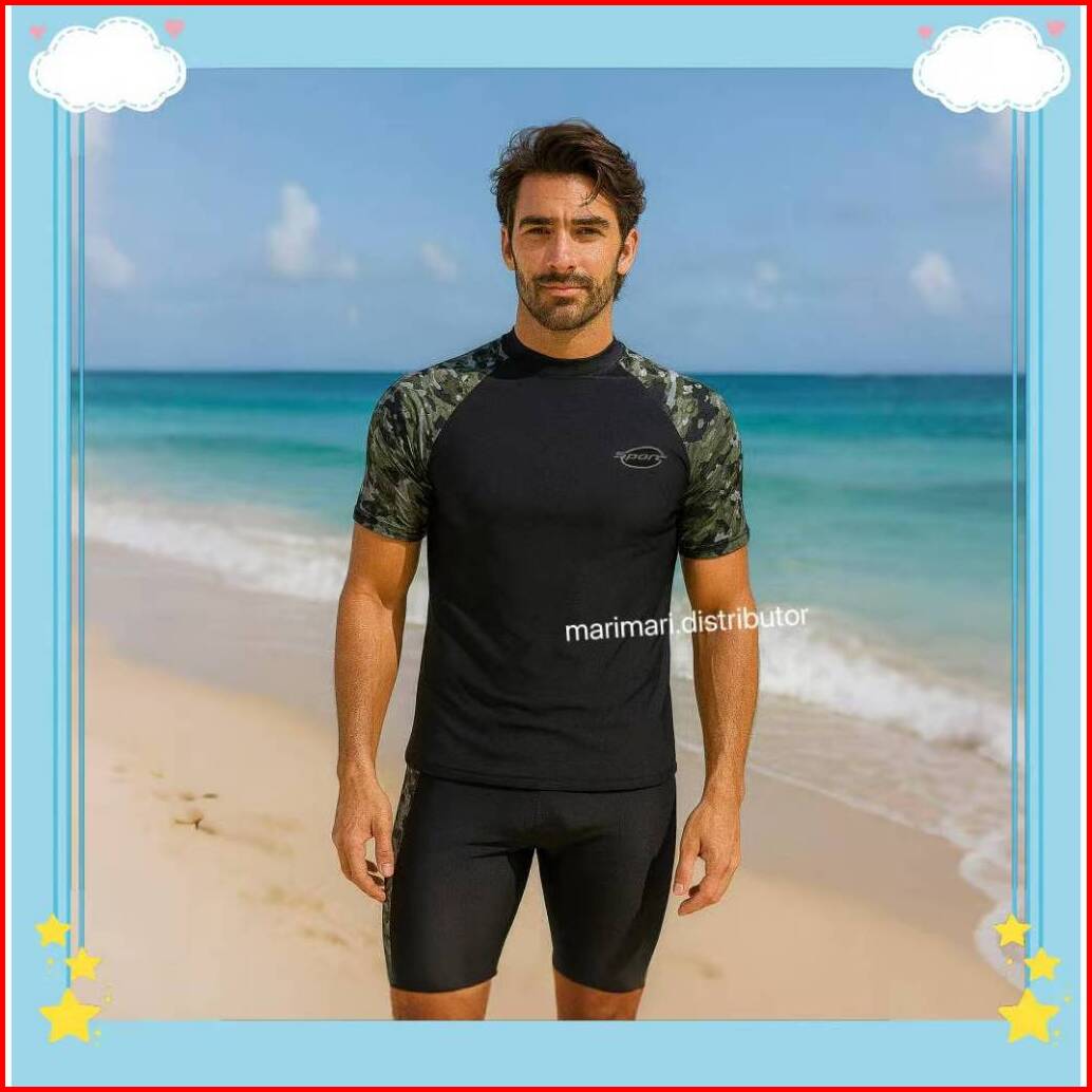 91026 Baju Renang Murah Antiuv Satu Set Pakaian Renang Celana Lengan Pendek Dewasa Remaja Cowok Pria