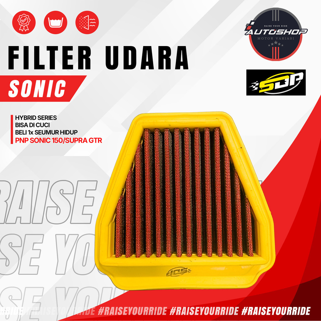 FIlter Udara SONIC SUPRA GTR 30 MIKRON Penyaringan Debu Maksimal Berbahan Kain Dan di lengkapi Kawat Premium Case Luar Karet Premium Original Merk SDP