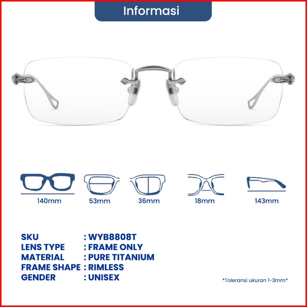 Eyekan Kacamata Rimless Bentuk Geometric Anti Blue Light Bahan Titanium Murni Ringan Kokoh Bisa Minus Fashion Korea Wani