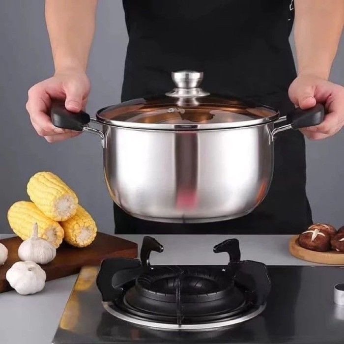 KOREAN SOUP POT PANCI SOP STAINLESS VIENNA UKURAN 22, 24, 26, 28 CM DENGAN TUTUP KACA