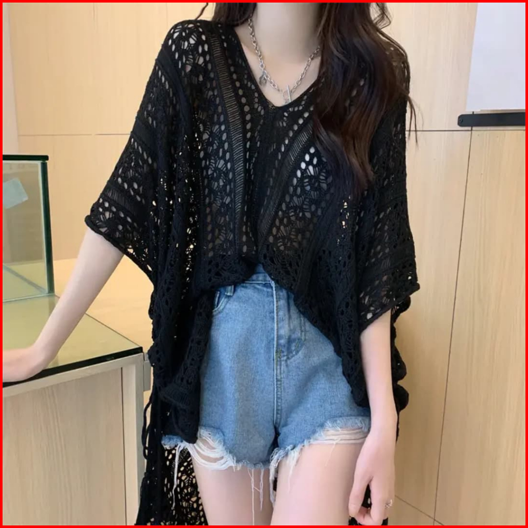 Emiola Hollow Blouse Out Loose Knit Top - Atasan Wanita Premium