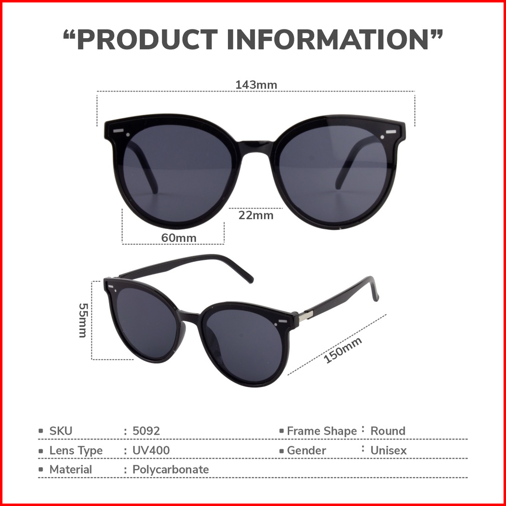 Eyekan Kacamata Hitam Sunglasses Frame Bulat Anti Uv 400 Polycarbonate Trendy Pria Wanita 5092