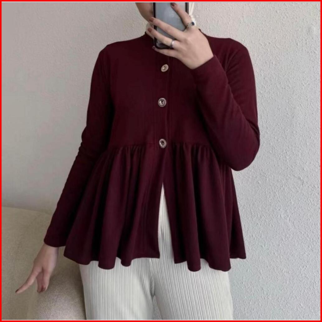 Blouse Peplum Wanita Knit Lengan Panjang Atasan Cardigan Terbaru Korean Style