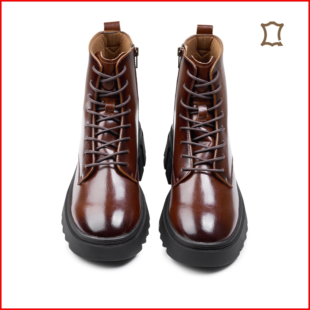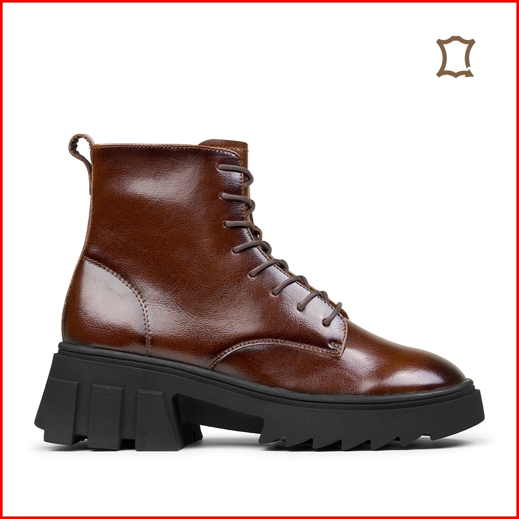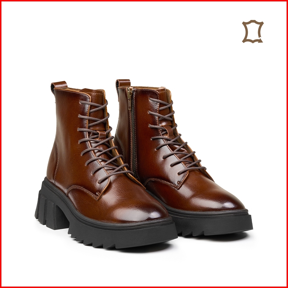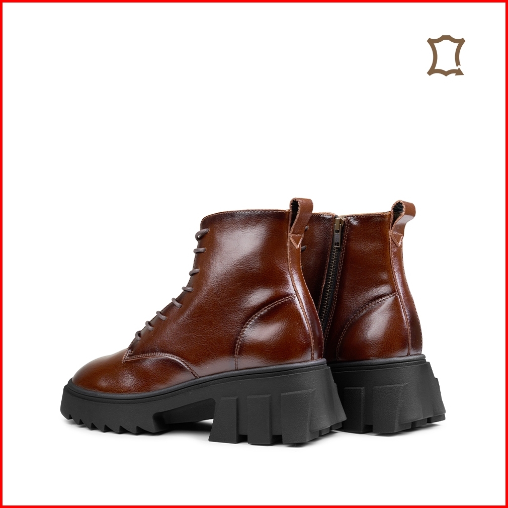 Prabu - Maura Brown Sepatu Kulit Chunky Boots Wanita - Cokelat