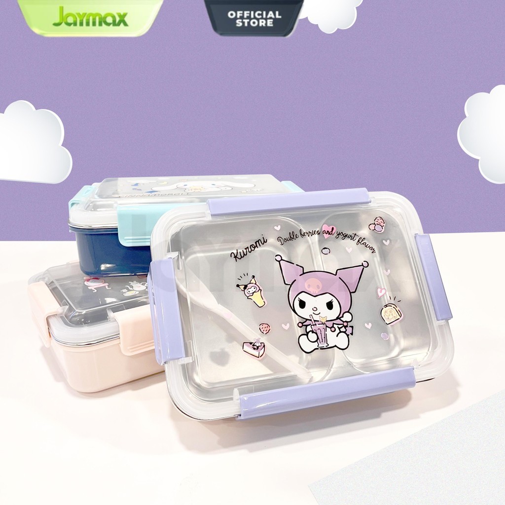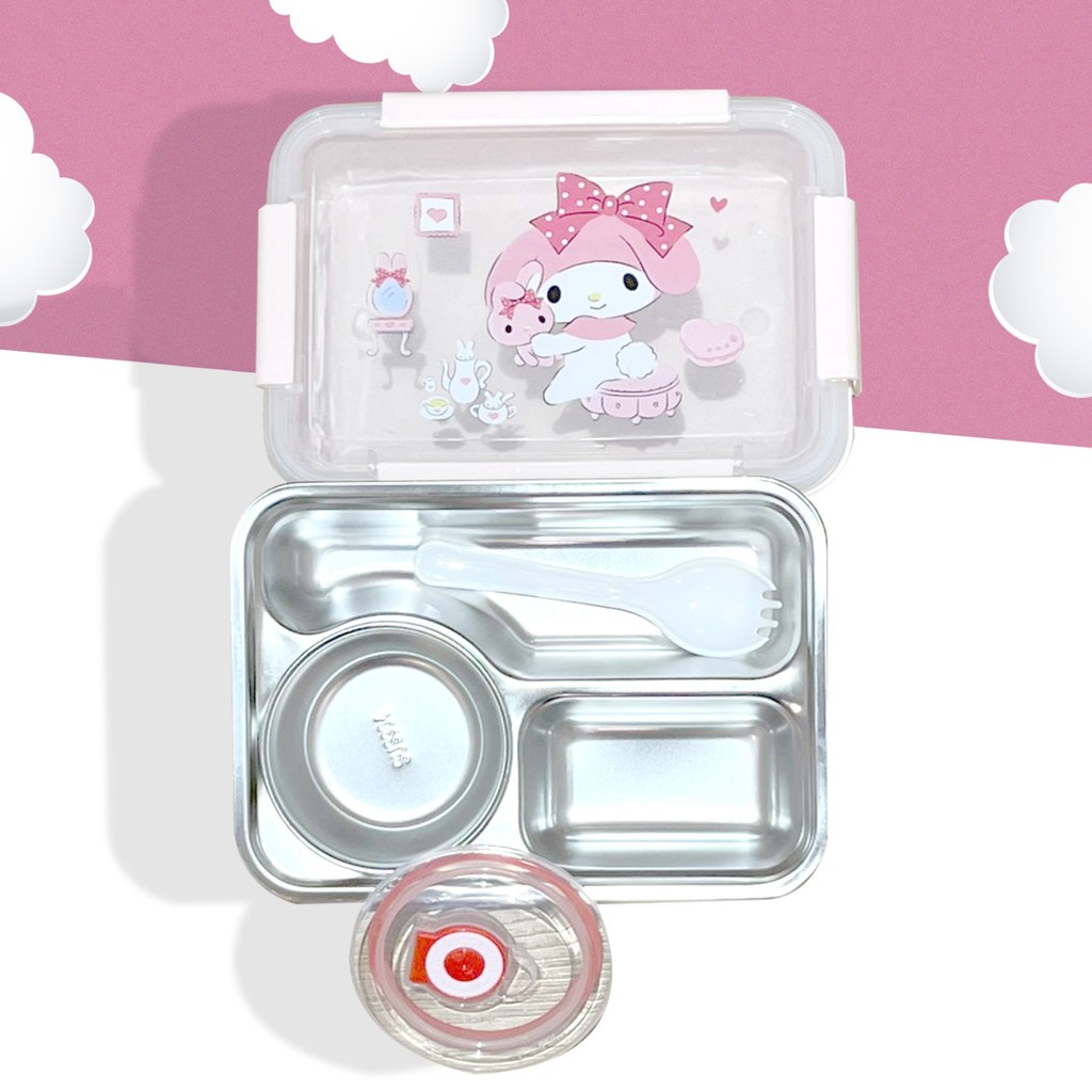 Kotak Makan Sanrio Stainless Steel 2&3 Sekat Anti Tumpah Kotak Bekal Lunch Box Set Sendok