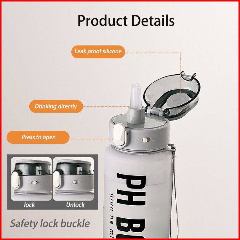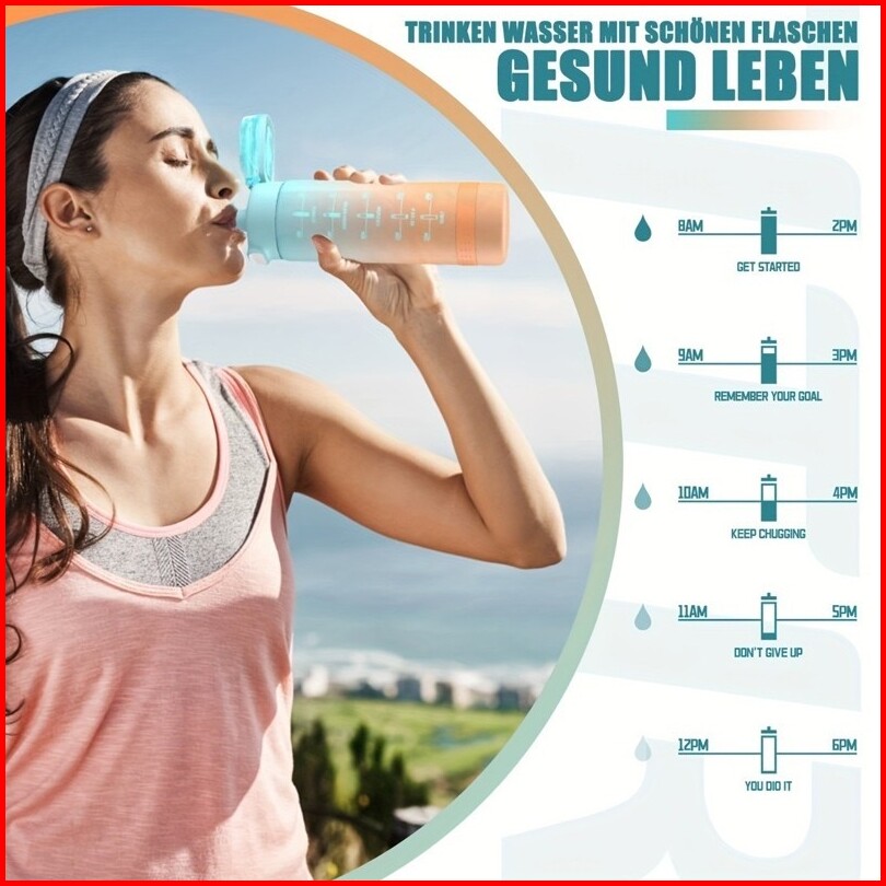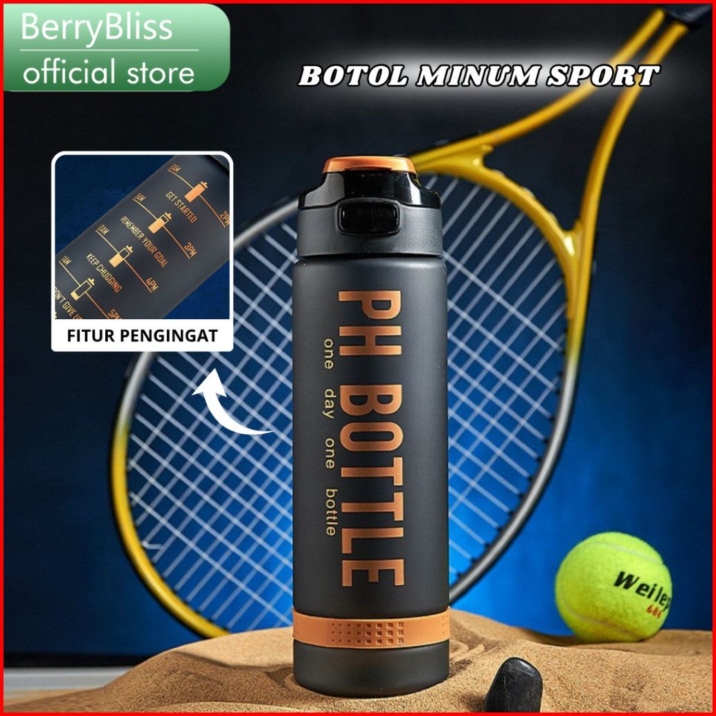 Berrybliss - Botol Minum Sport 1000ml Botol Motivasi 1l Botol Penanda Gradient Gradasi Botol Minum 1 Liter Aesthetic Fre