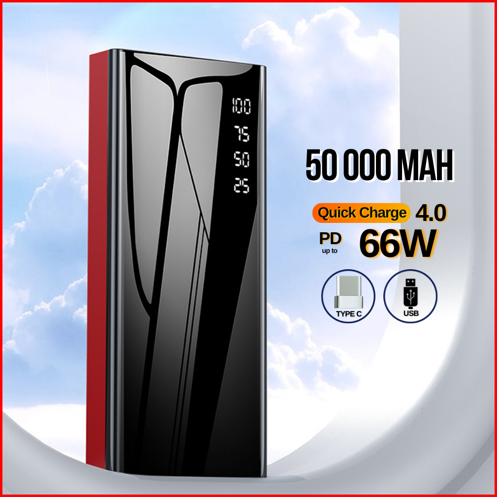 Powerbank T93 50000 Mah Dual Output Putih Hitam Dengan Screen Digital Display Indikator Led - Lcd Daya Tahan Lama Desain