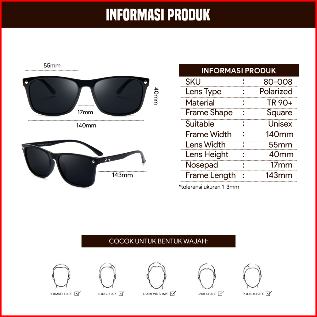 Eyekan Kacamata Hitam Minus Polarized Anti Uv400 Frame Kotak Sunglasses Anti Silau Fashion Pria Wanita 80-008