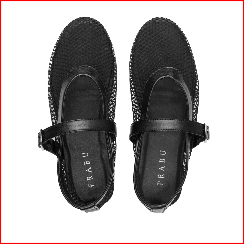 Prabu - Sepatu Kulit Slip On Wanita Alana Honeycomb Black Hitam