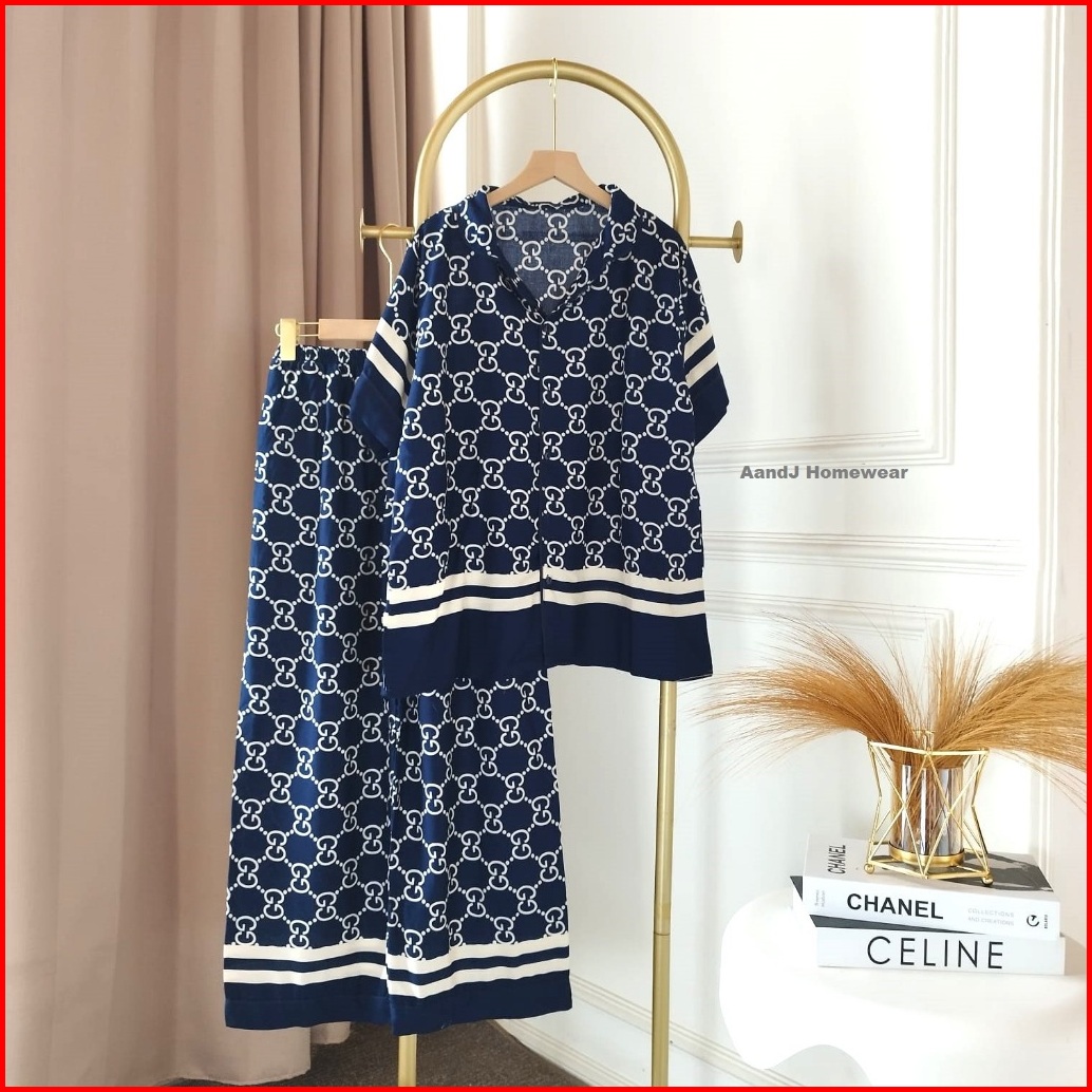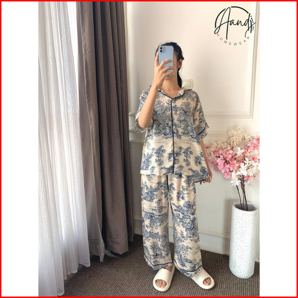 Piyama Motif Baju Tidur Setelan Lengan Pendek Celana Panjang Piyama List