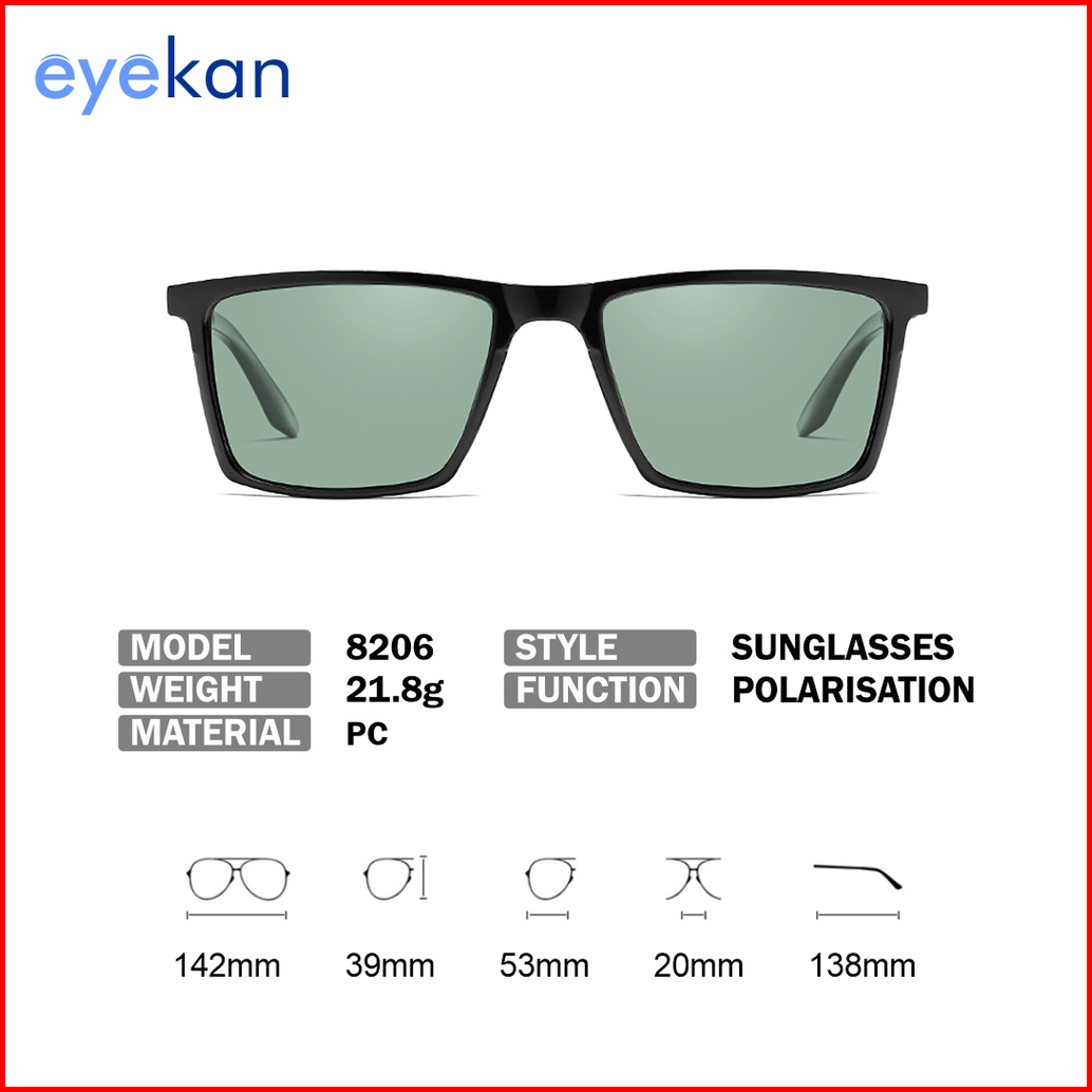 Eyekan Kacamata Hitam Polarize Anti Uv 400 Kacamata Sunglasses Wayfarer Bisa Minus Untuk Pria Wanita Bahan Pc 8206