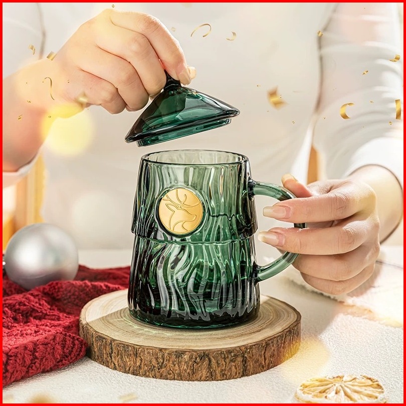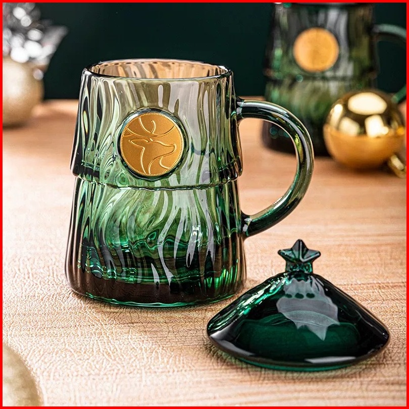 99khome Gelas Kaca Tebal Gelas Minum 320ml Glass Mug Natal Gelas Cantik Mug Aesthetic K1067