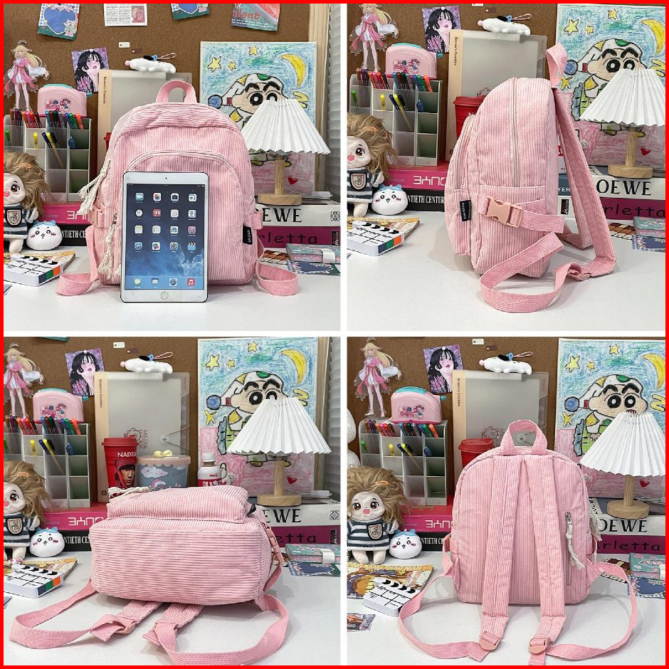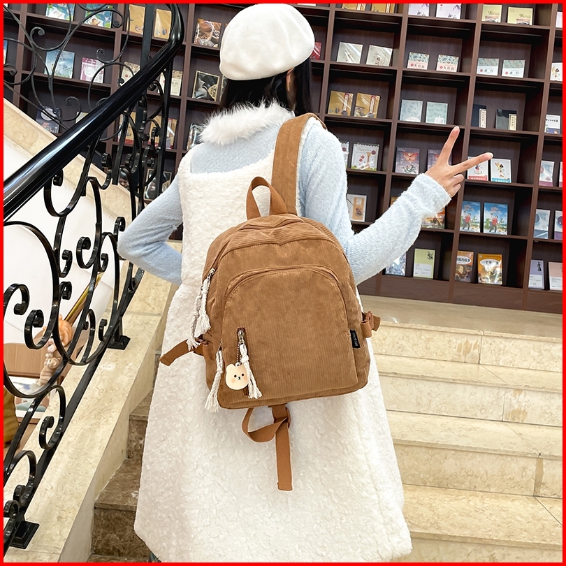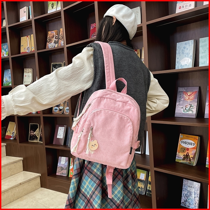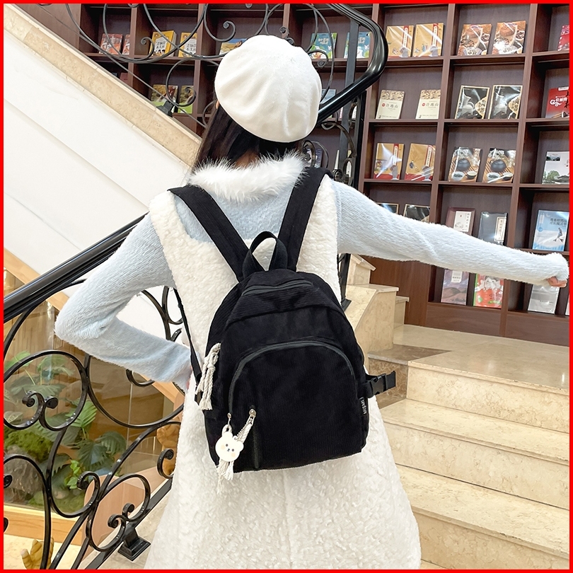 Mismi Ulani Bag Tas Ransel Wanita Korduroi Korean Style School Backpack Perempuan Trendy - 43u