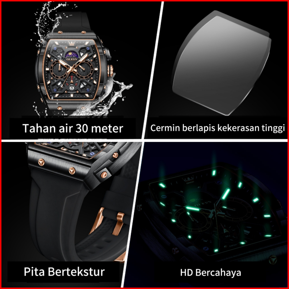 Olevs Jam Tangan Pria Original 100 Anti Air Mewah Arloji Pria Chronograph Analog Keren Fashion Men Watch Model 2942