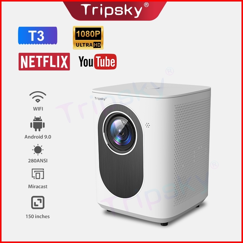 Tripsky T3 Proyektor Android 280ansi 6000 Lumens 4k Hd Dual Band Lcd Display Proyektor Mini Smart Projector