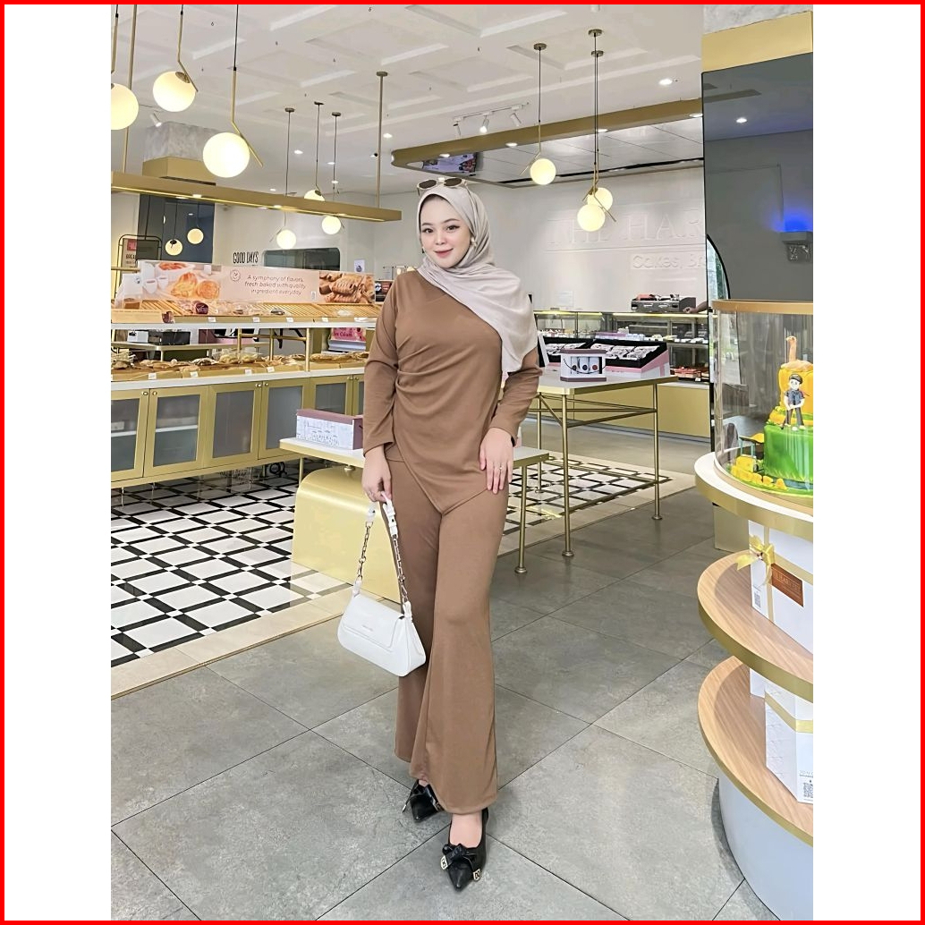 Promo Kiera Set Cutbray Knit Soft Rib Stelan Wanita Terbaru Stelan Kekinian Ootd Hijab