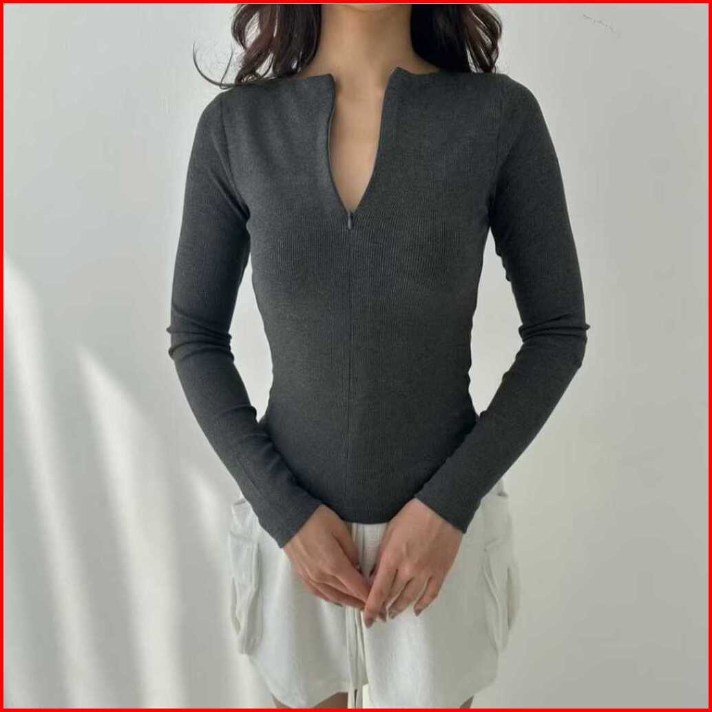 Evonne Zipper Casual Knit Top - Long Sleeve - Baju Lengan Panjang Wanita Knit Top Blouse