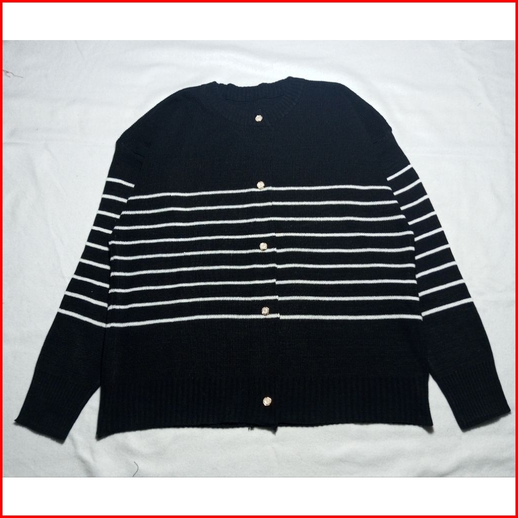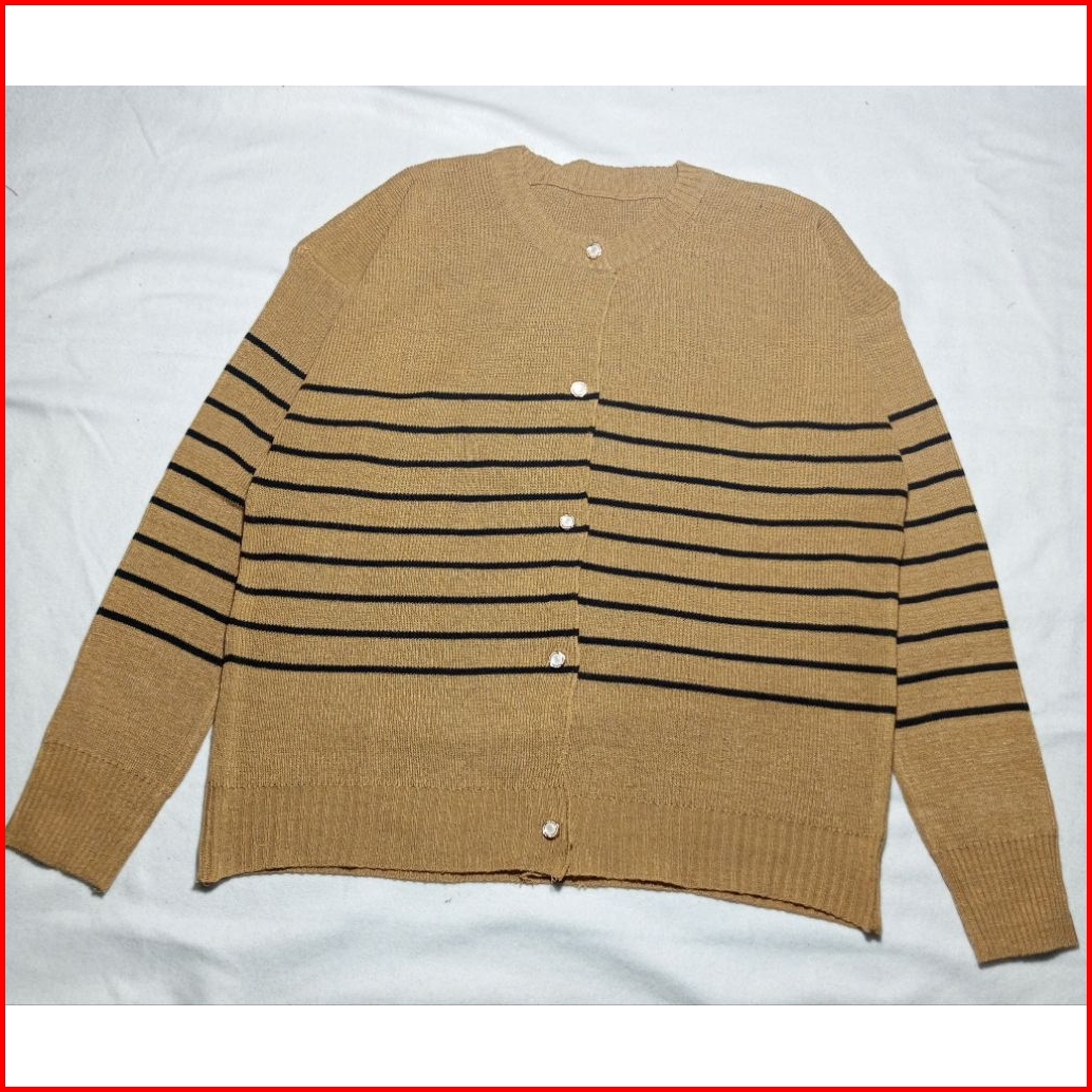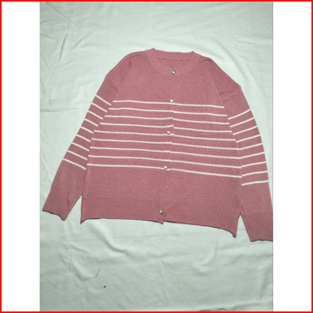 Cardigan Rajut Motip Strip Allsize Kancing Mutiara Premium