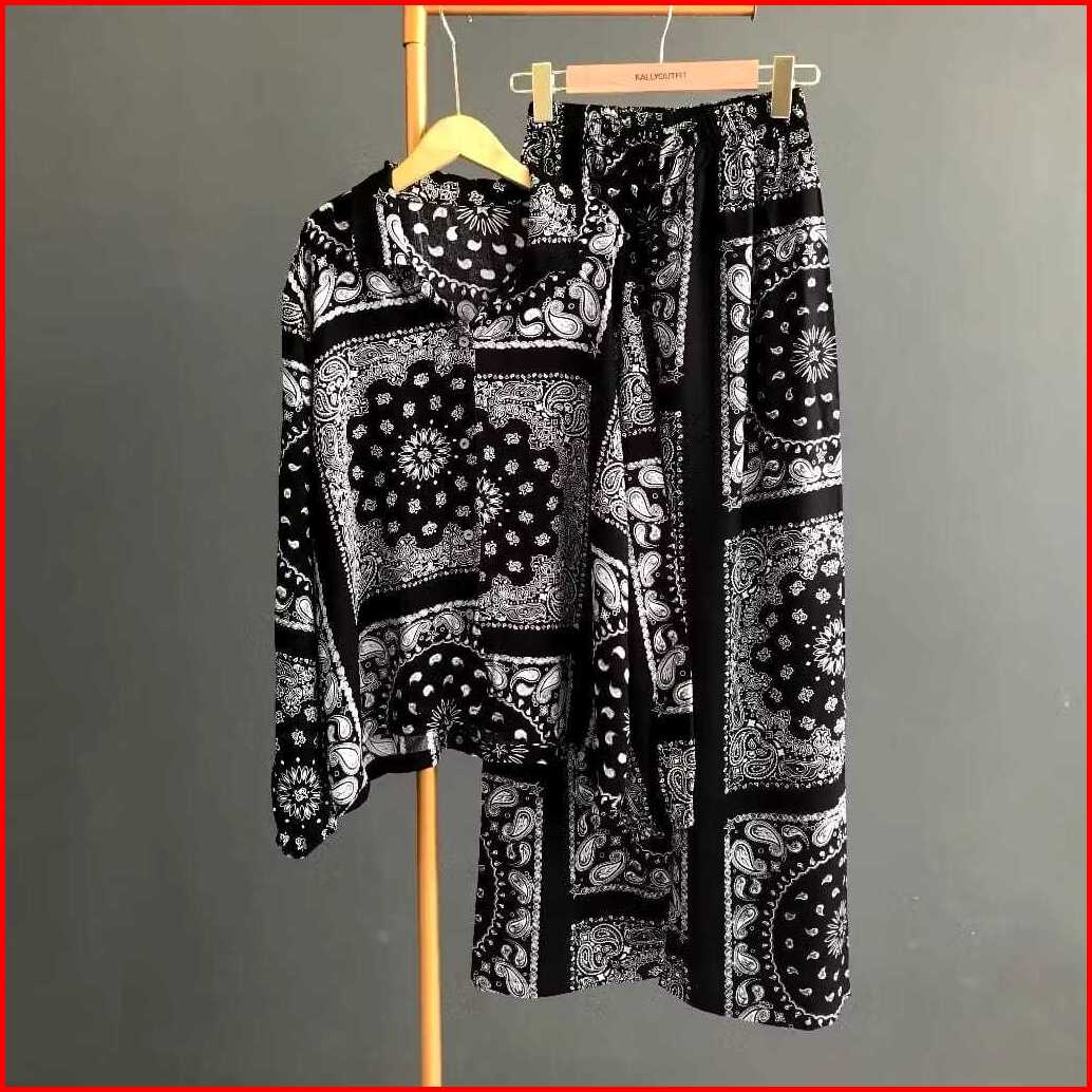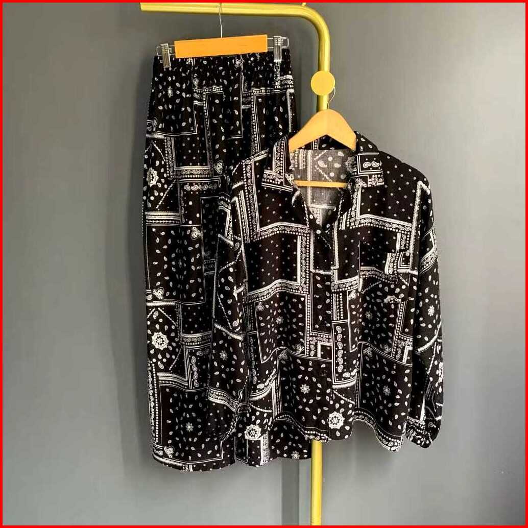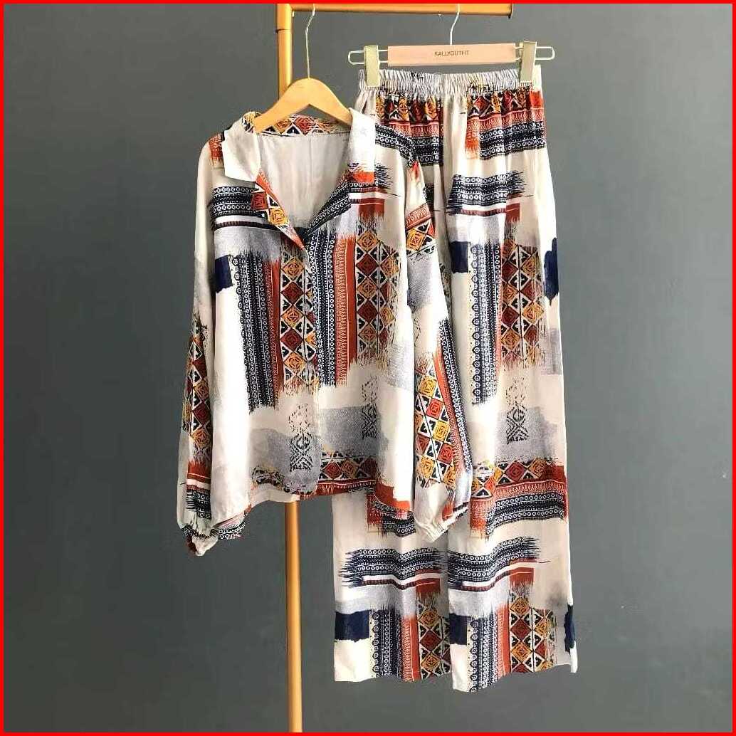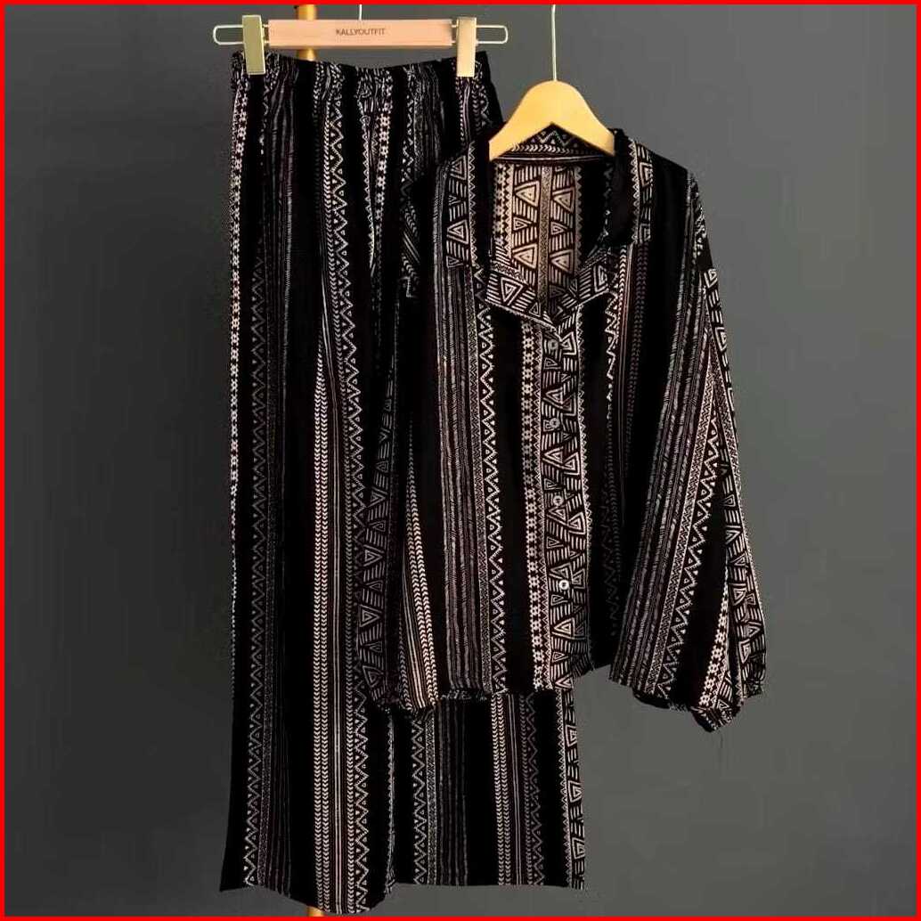 Setelan Kemeja Rayon Motif Kekinian Dan Celana Kulot Hommy