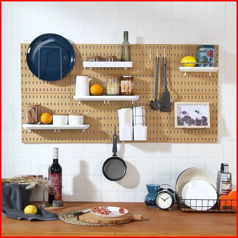 99khome Pegboard Papan Tempel Dinding Cokelat Dekorasi Kamar Rak Gantung Aesthetic Tanpa Paku K1166