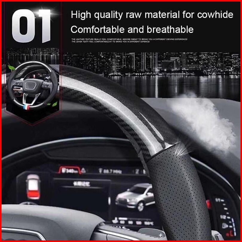 Sarung Stir Mobil Logo Brand Cover Steer Carbon Karbon Sport Kulit Domba Asli Original Toyota Premium Quality Emblem Aks