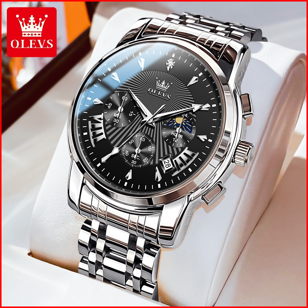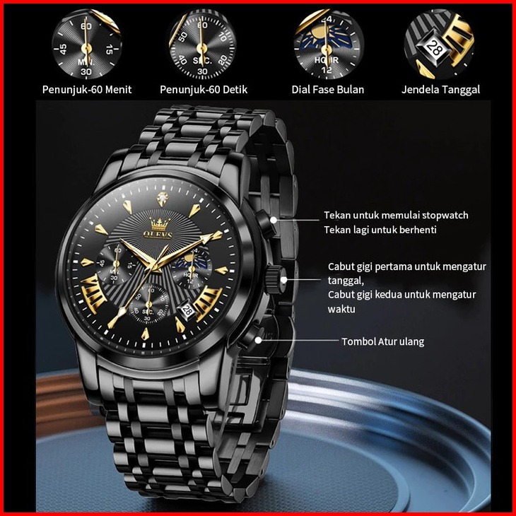 Olevs Jam Tangan Pria Anti Air Original 100 Chronograph Analog Stainless Steel 2025 Terbaru Tahan Luxury Led Sport Cowok