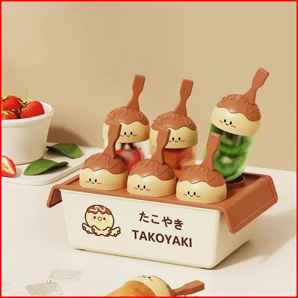 99khome Cetakan Es Krim Lucu Takoyaki Ice Cream Mold Karakter Imut Plastik K1290