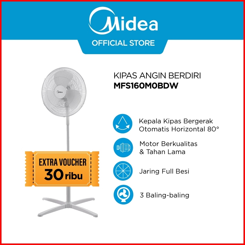 Harga Diskon Midea Kipas Angin Berdiri 16 Inch Mfs160m0bdw Motor Tahan Lama 3 Pengaturan Angin Tinggi Bisa Diatur Kokoh