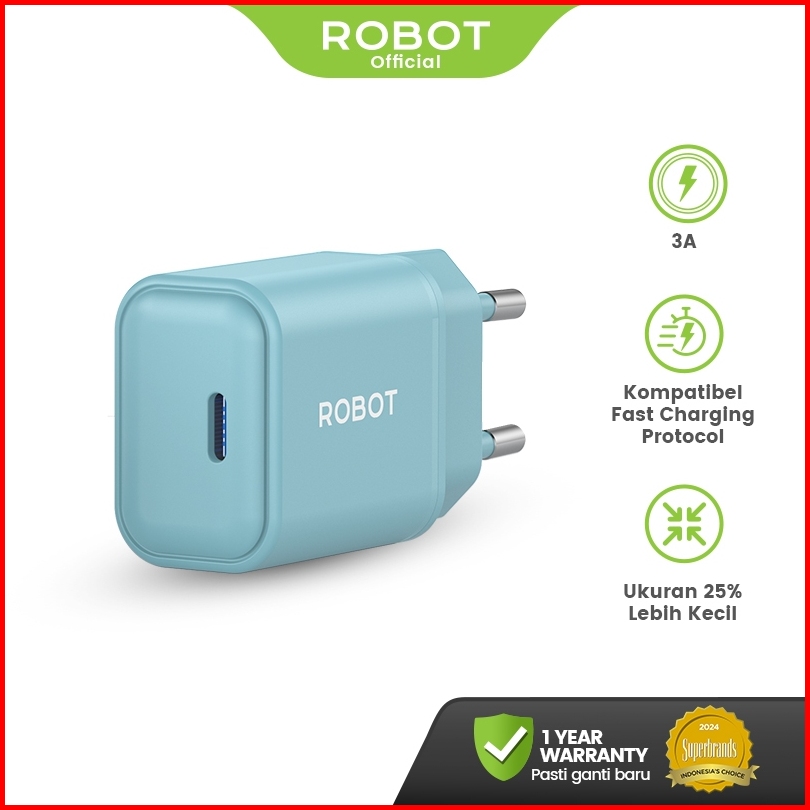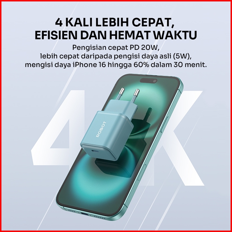 Robot Adaptor Charger Gan 20w Fast Charging 3a Pd With Type C Cable Temperature Control Kepala Charger For Android Iphon
