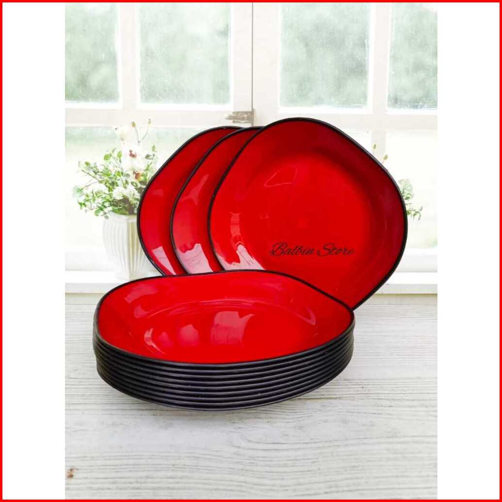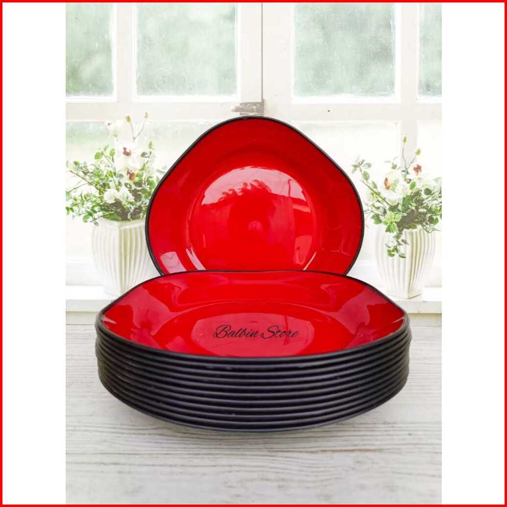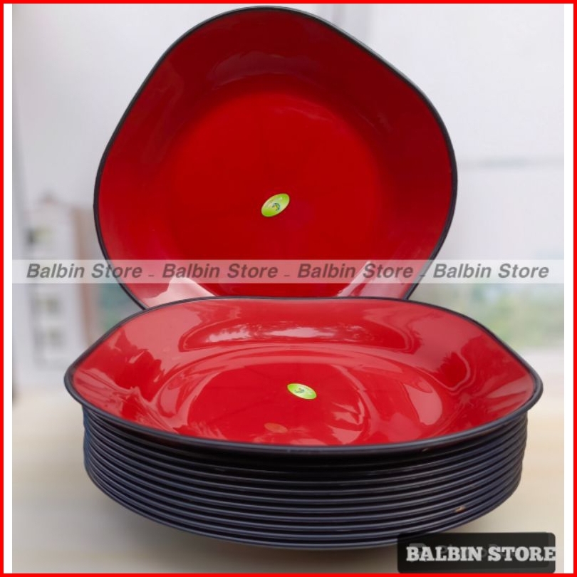 Satu Lusin Piring Prasmanan Plastik Tebal Ukuran Besar 23 Cm Warna Merah Combinasi