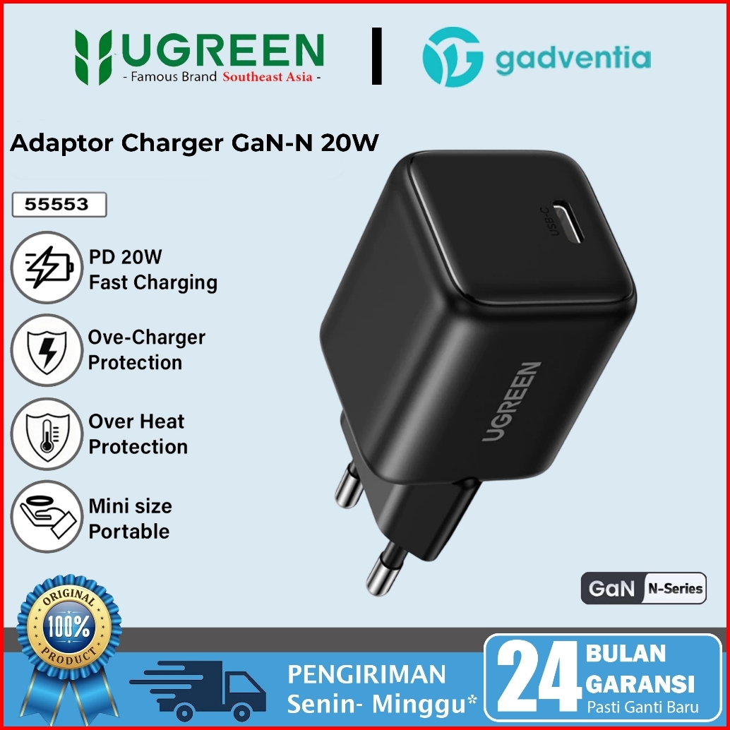 Ugreen Kepala Charger Mini Gan N Pd Type C Fast Charging 20w 30w 45w Adapter For Iphone Android