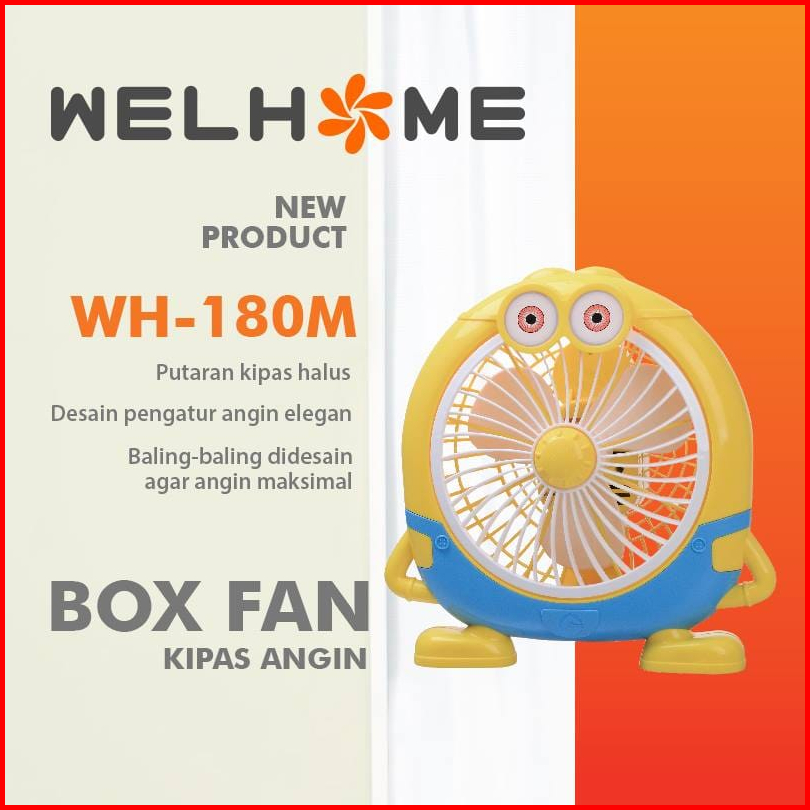 Kipas Angin Karakter Welhome 10 Inci Table Fan Meja Mini Listrik 25 Cm Watt Box Fan Lucu Hadiah Kantor Rumah Wellhome
