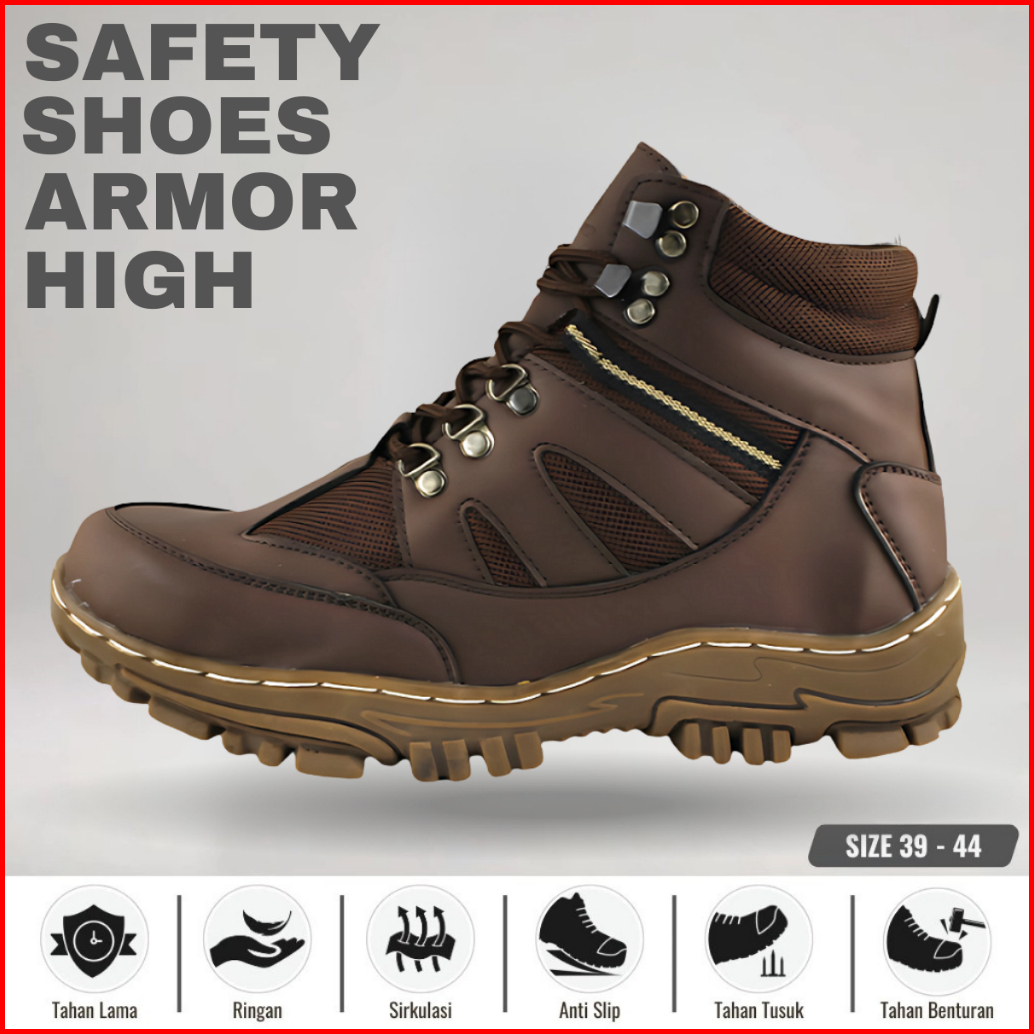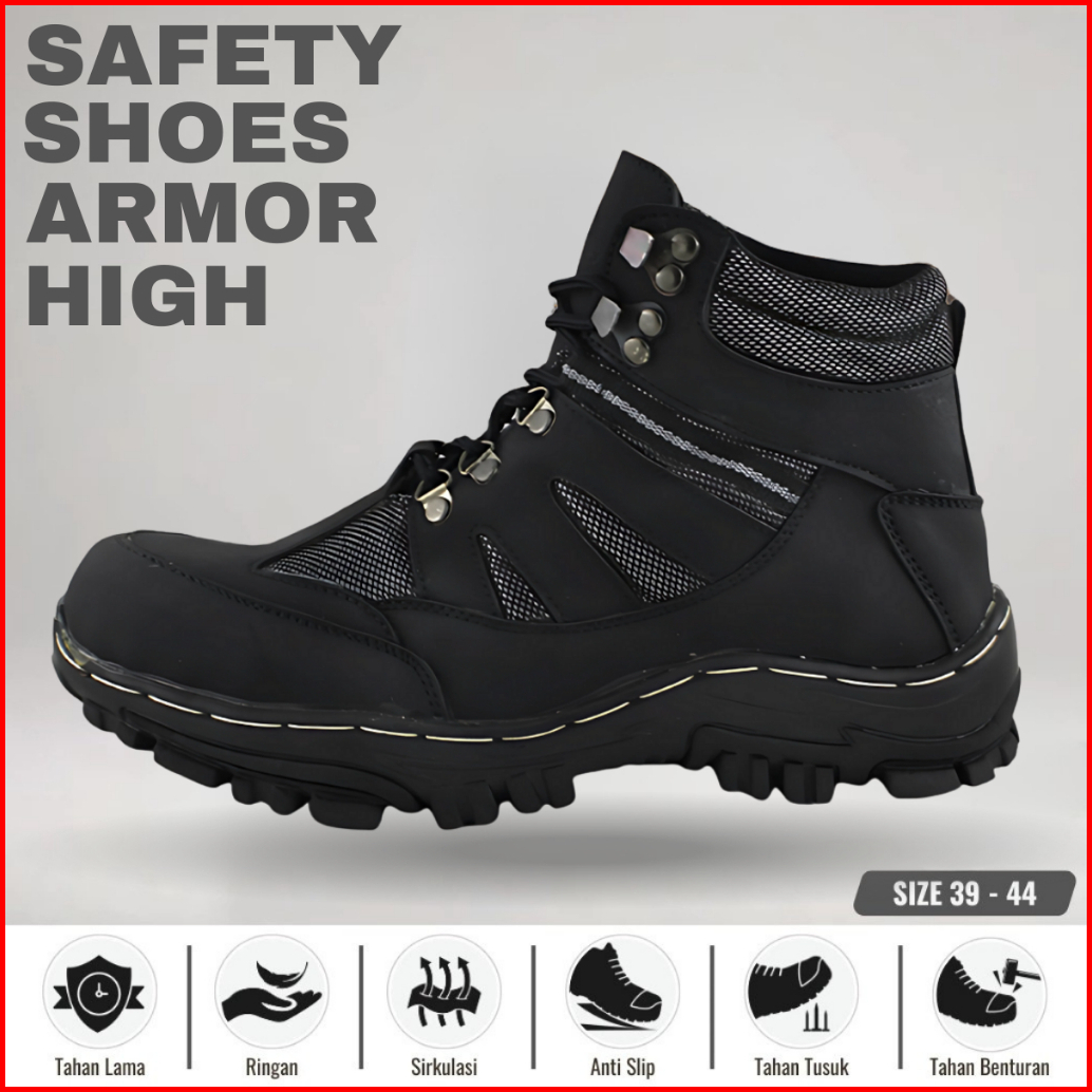 Sepatu Safety Pria Boots Armor Safety Boots Sepatu Outdor Turing Hiking Bikers Ujung Besi