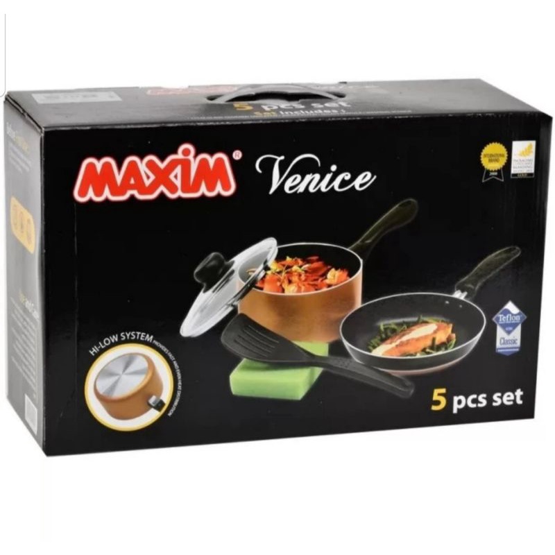 MAXIM : VENICE 5 SET PANCI TUTUP KACA 17 CM + FRY PAN 20 CM COOKWARE SET 5 IN 1