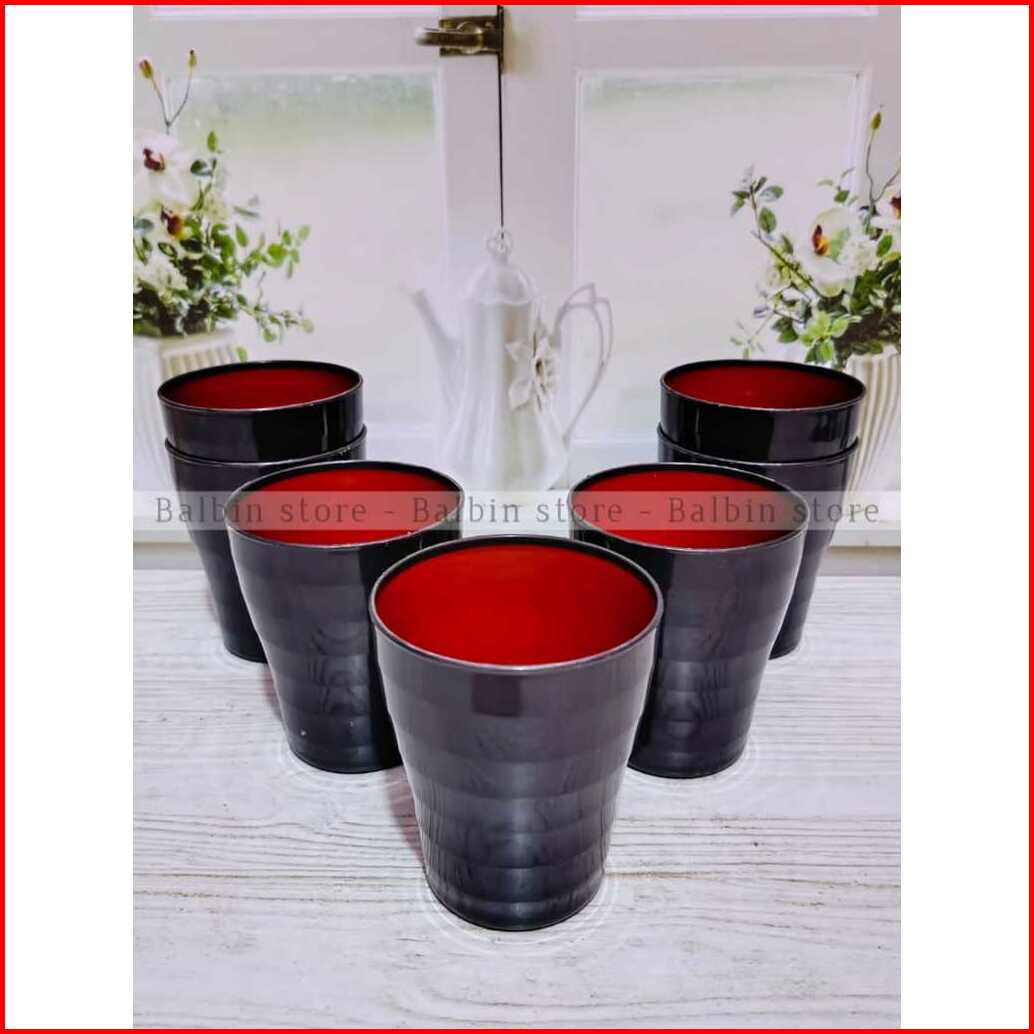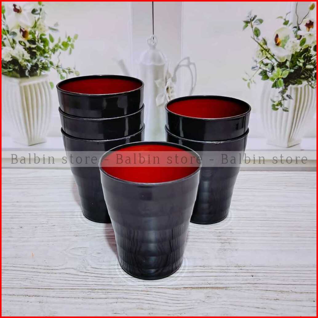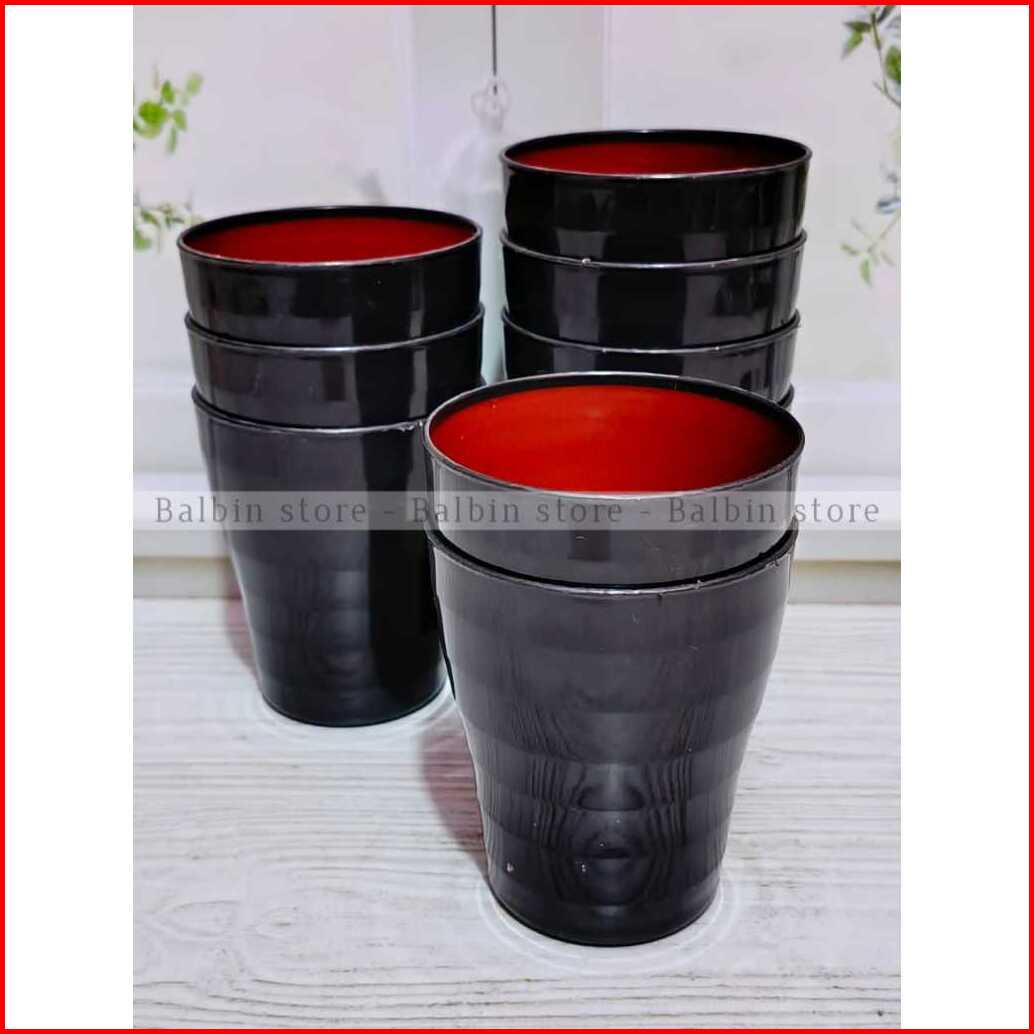 Promo 6 Pcs Gelas Ramen Plastik Model Ulir 250 Mili Warna Hitam Kombi Terbaru Tebal Kuat Anti Pecah