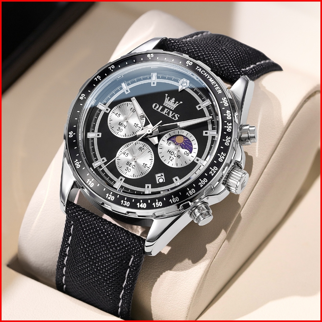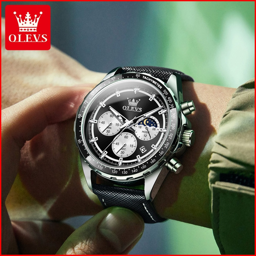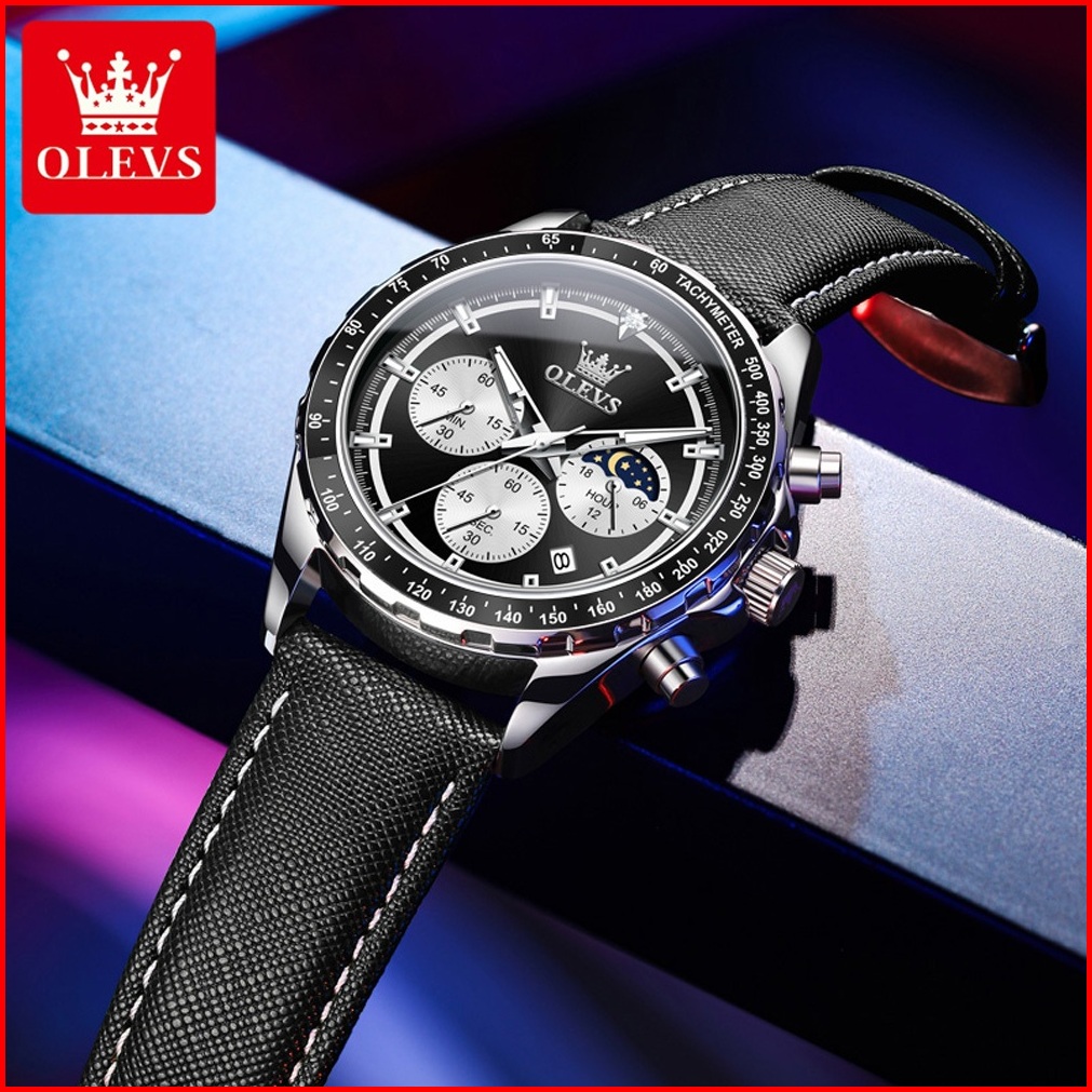 Olevs Jam Tangan Pria Anti Air Original Kulit Kalender Luminous Chronograph Analog Watch Men Model 2945