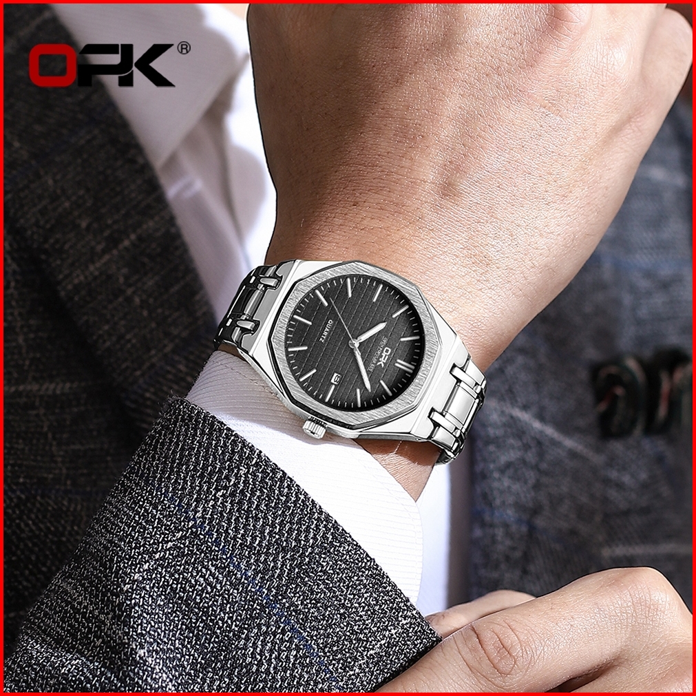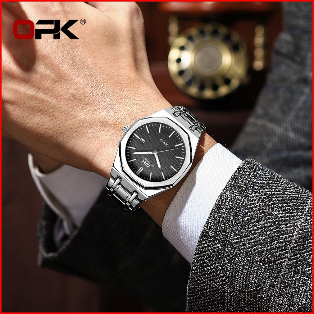 Opk Jam Tangan Pria Anti Air Original Hitam Putih Keren Terbaru Mewah Luxury Stainless Steel Watch Men Model 8139