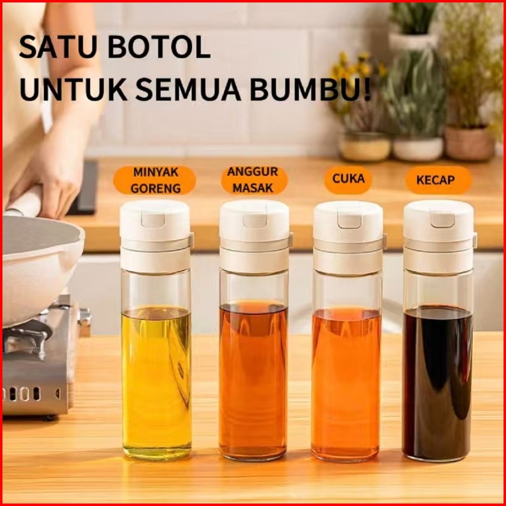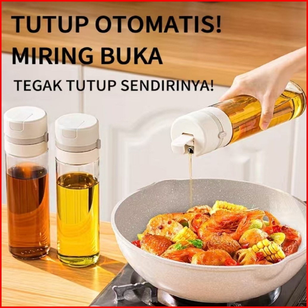 99khome Premium Botol Minyak Flip Lock 500ml Anti Bocor Serbaguna Glass Oil Can Jar Wadah Minyak Aman K1293