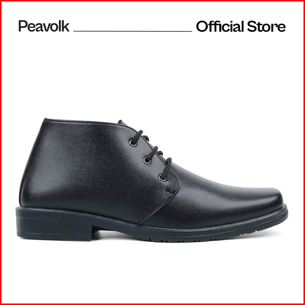 Peavolk Sepatu Boots Formal Pria Kulit Sintetis - Sepatu Kerja Kantor Casual Elegan Hitam