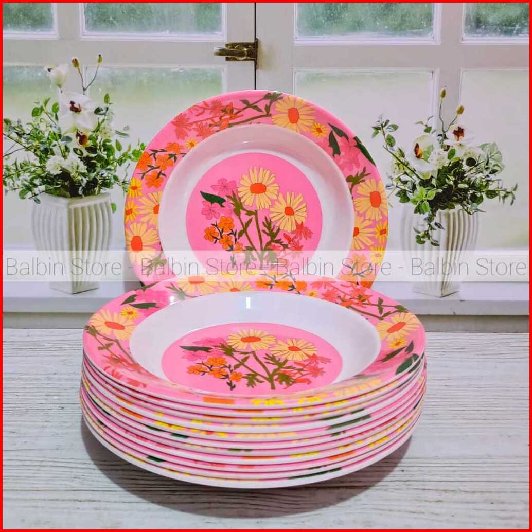 Promo Spesial 1 Picis Piring Melamin Cekung 9.inc Tebal Kulaitas Food Grade Motif Bunga Pink Terbaru