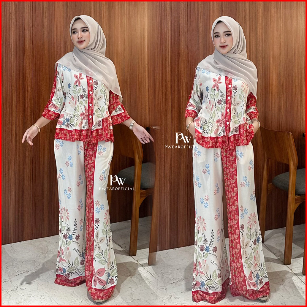 Luna Set Bahan Katun Rayon Diamond Motif Viral Oneset Busui Friendly Rampel Kancing Aktif Celana Kulot Semi Cubray Ld 11