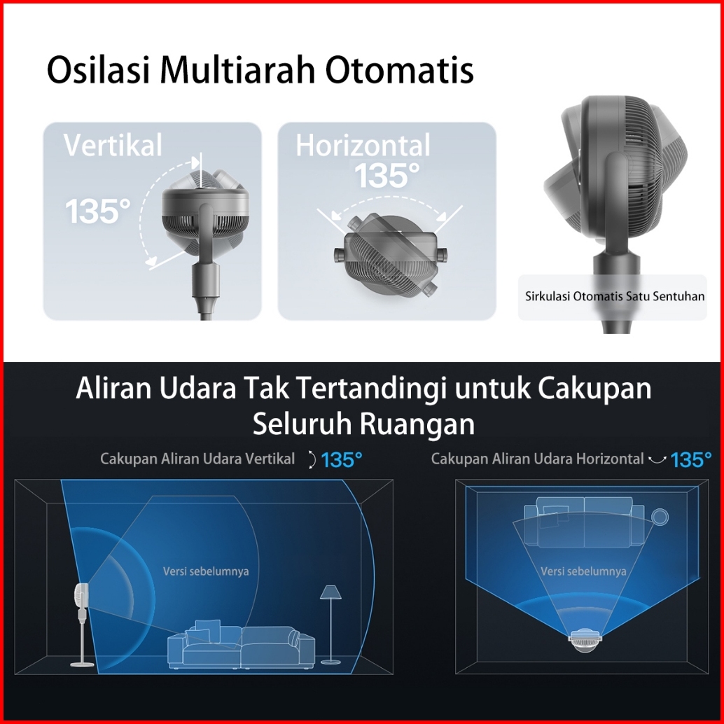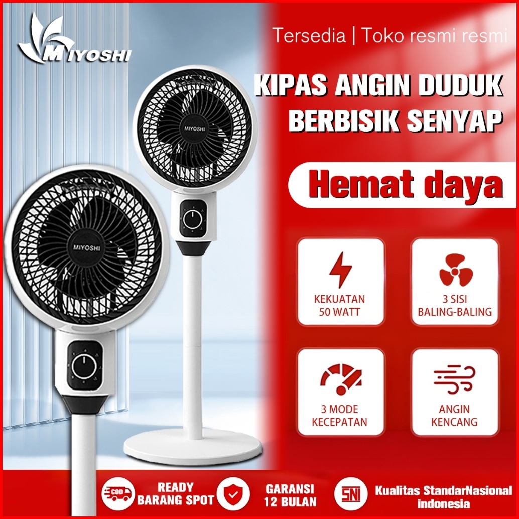 Kipas Angin Berdiri Rotation Fan Minimalis Stand Fan 180 Derajat 9 Inch Jangkauan Jauh Stand Fan Low Noise
