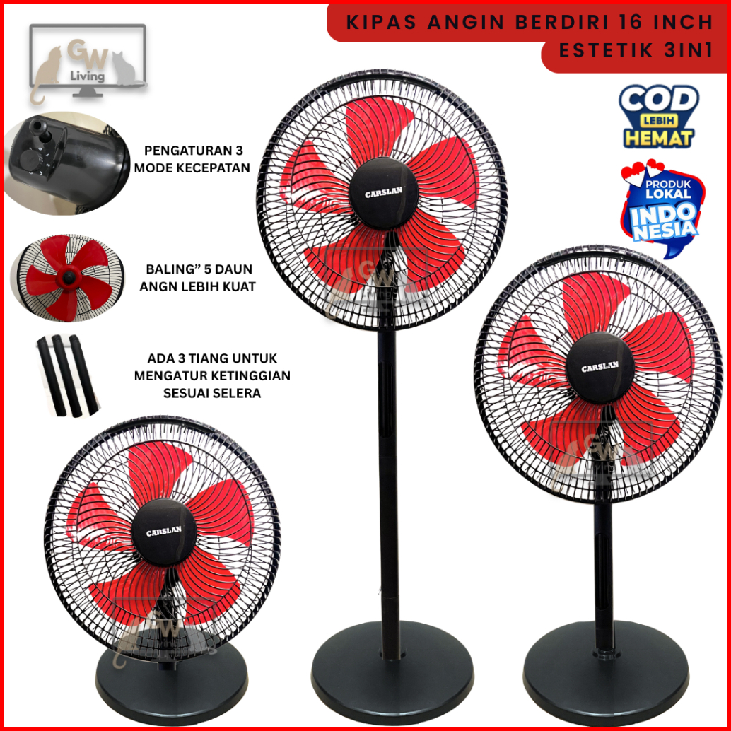 Kipas Angin Berdiri Stand Fan 16 Inch Estetik 5 Baling Kencang Jumbo Remot Timer Hemat Daya
