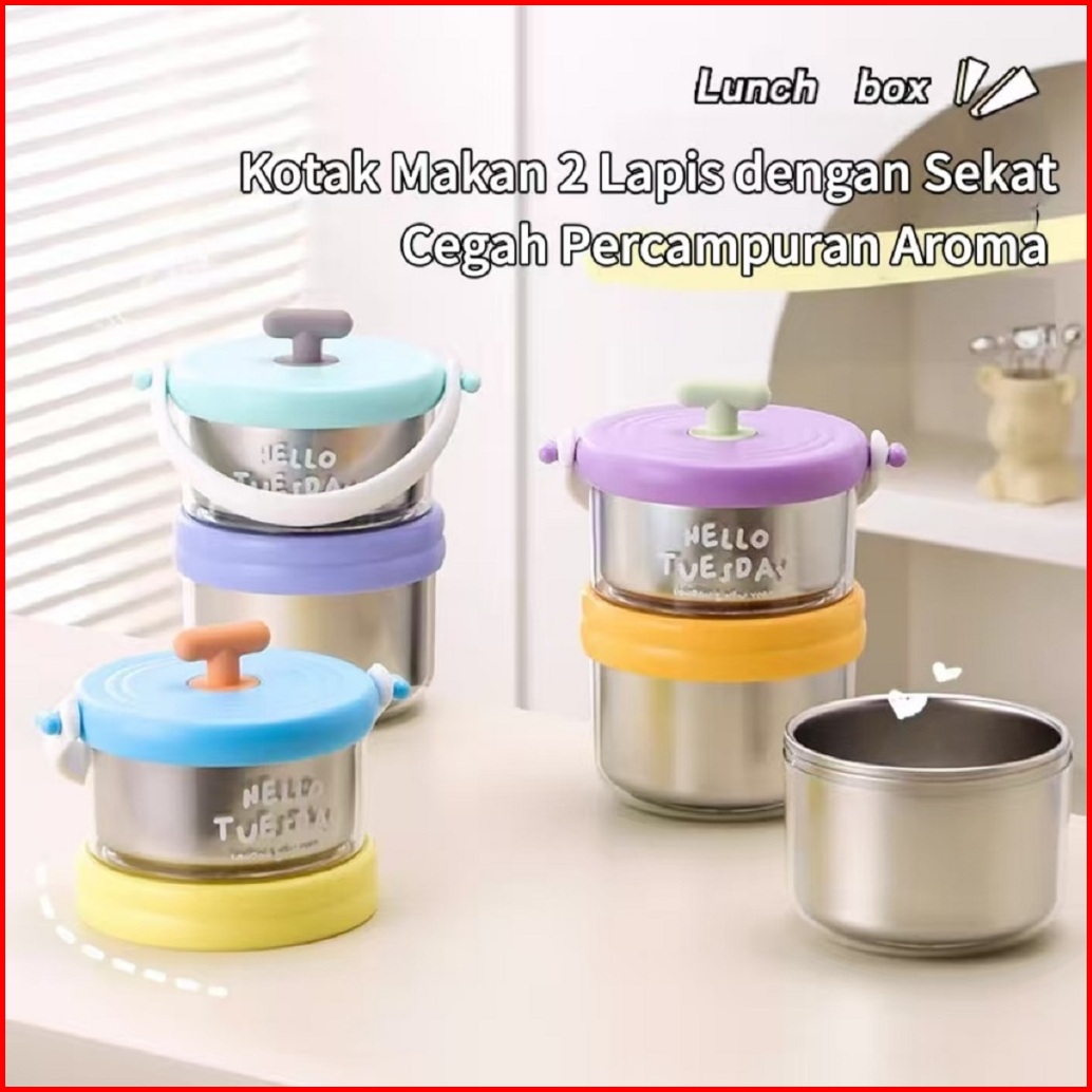 99khome Rantang Kotak Makan Stainless Steel 2 Lapis Sekat Anti Campur Bocor Aroma Aesthetic K1314