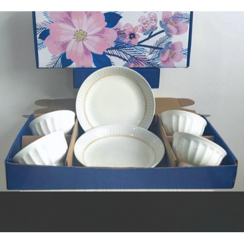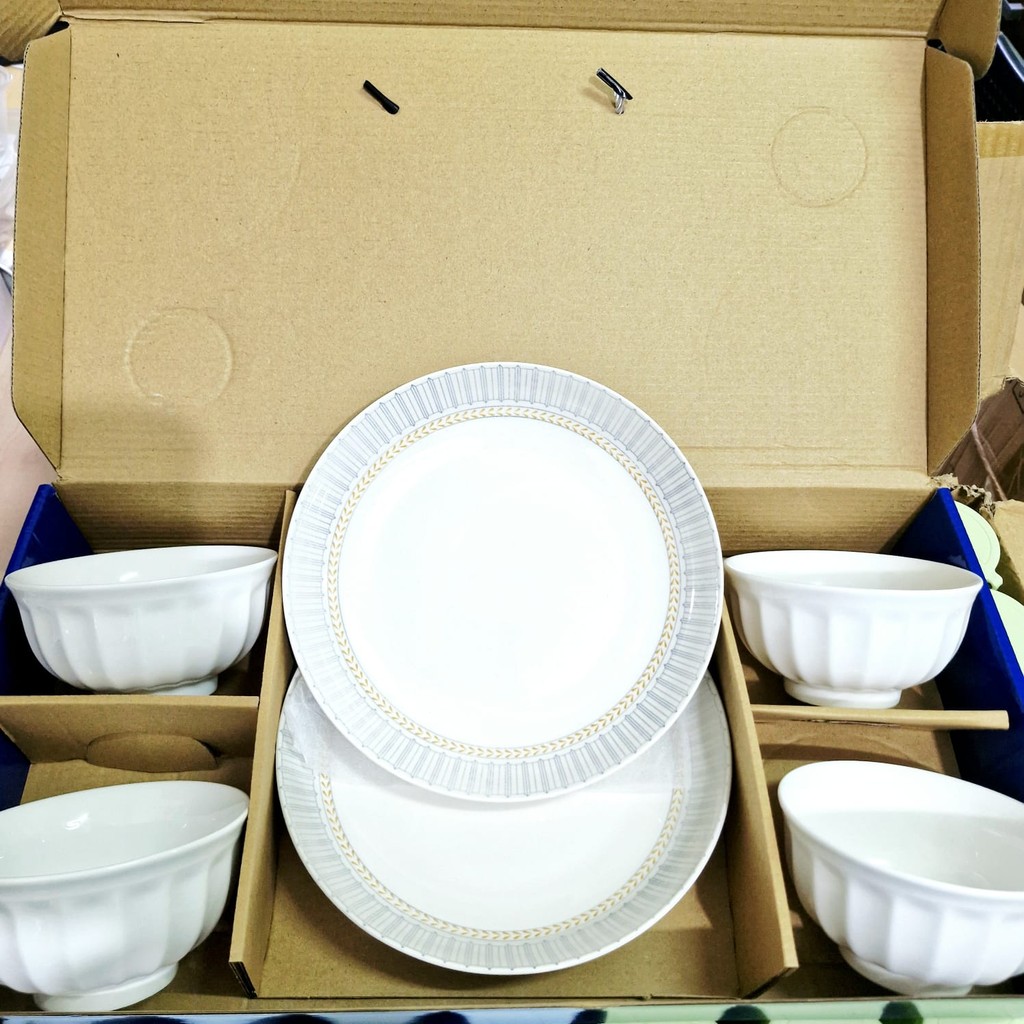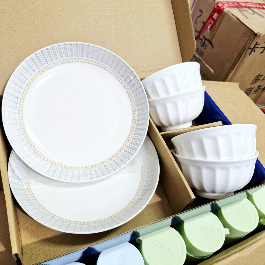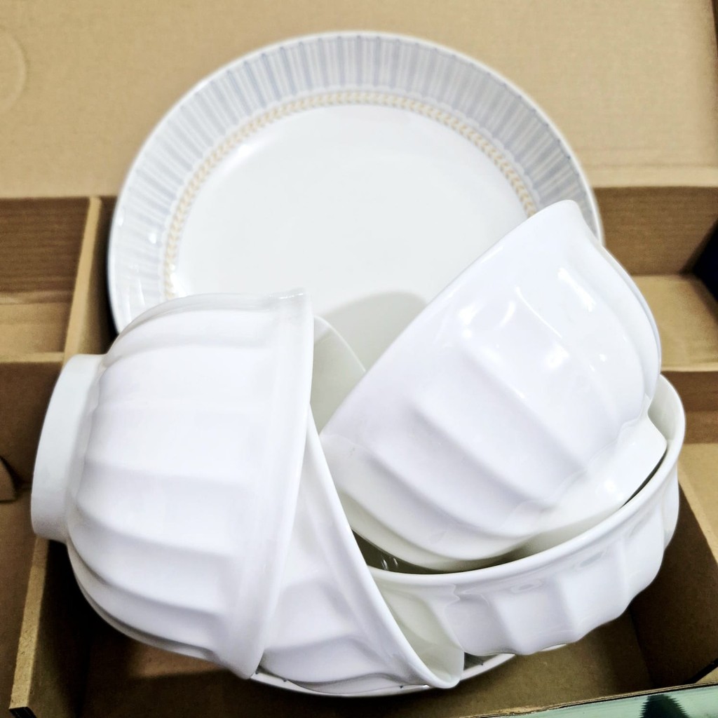 MANGKOK PORSELEN PUTIH POLOS SET HAMPERS PREMIUM SNI 2 PIRING 4 MANGKOK + BOX