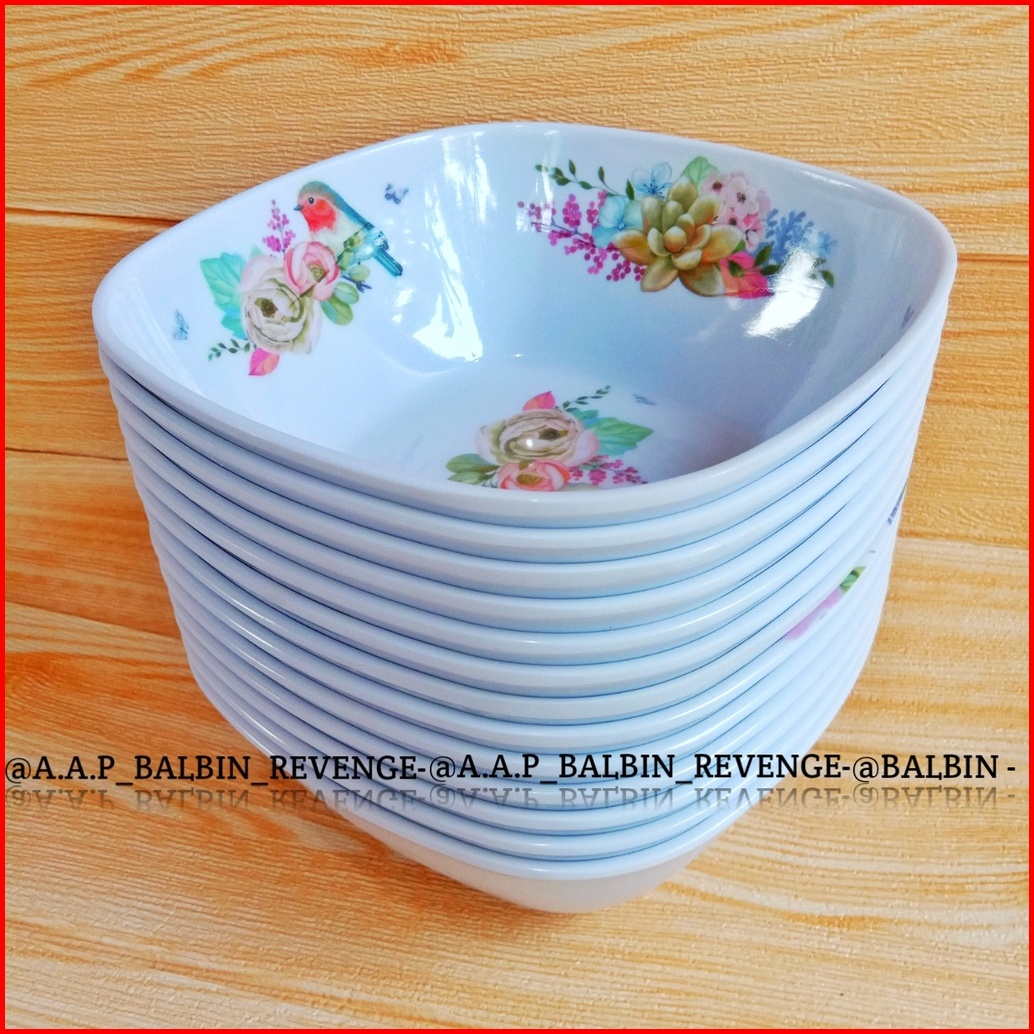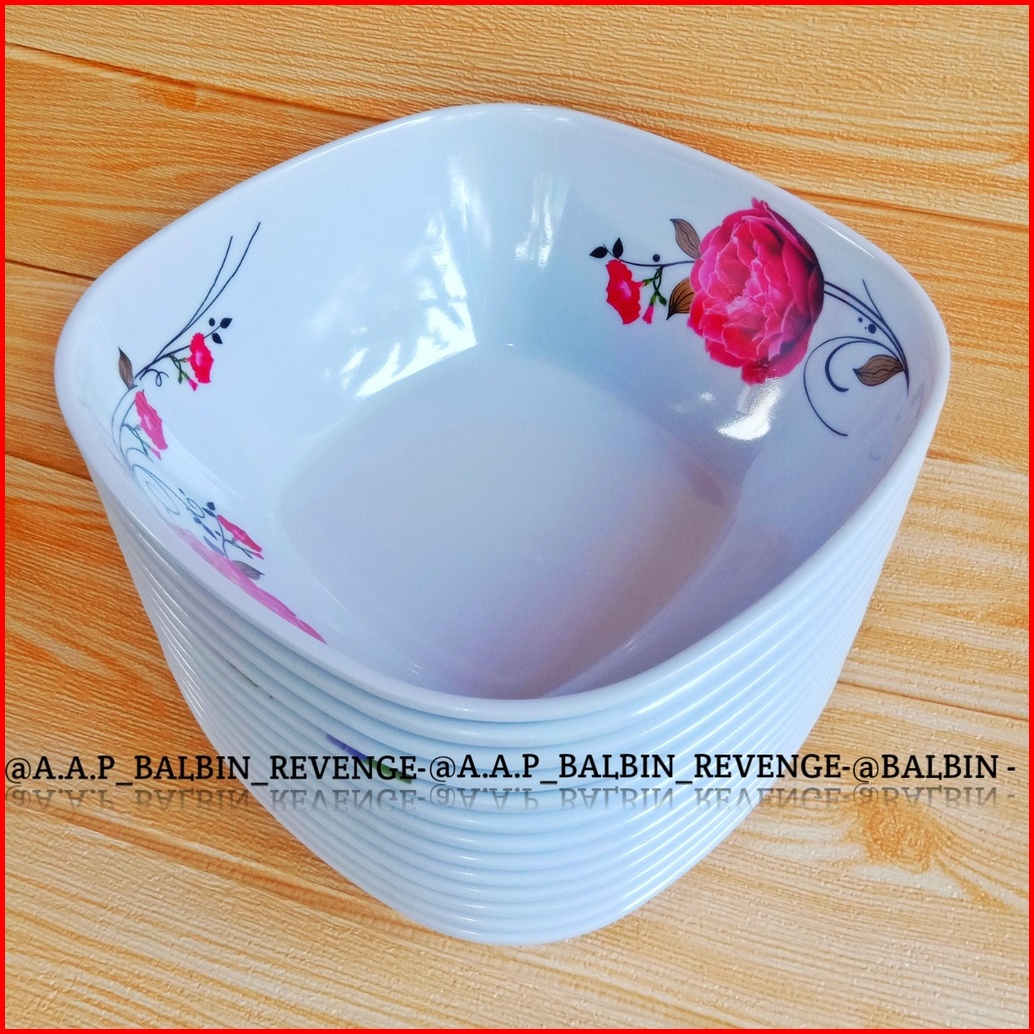 Promo 3 Pcs Mangkuk Kotak Melamin Motif Bunga 16 Cm Tebal Dan Tahan Panas Food Grade